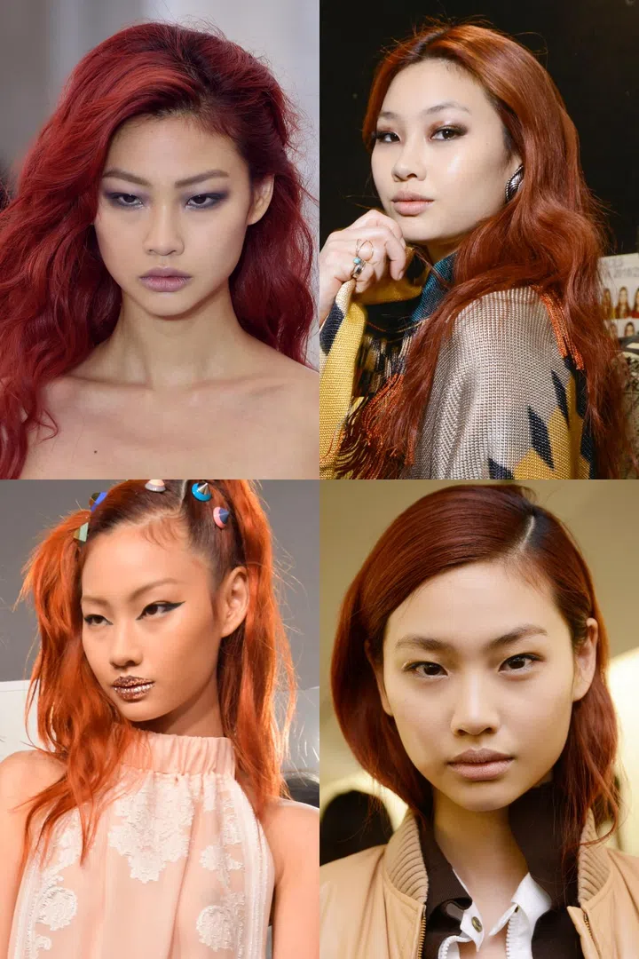 The flowy shoulder-length red hair is a Jung HoYeon trademark. She told The Korea Times how her locks had become her calling card as fashion minders and brand executives would refer to her as the "red-haired Asian because my Korean name is hard to pronounce." However, she chopped it off to a practical bob and coloured in black to get into the role of Kang Sae-Byeok.