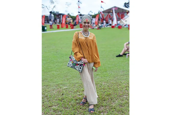 What she wore: A Forever 21 top, pants from Malaysian label Scha Alyahya x Fashionvalet and Saltwater sandals