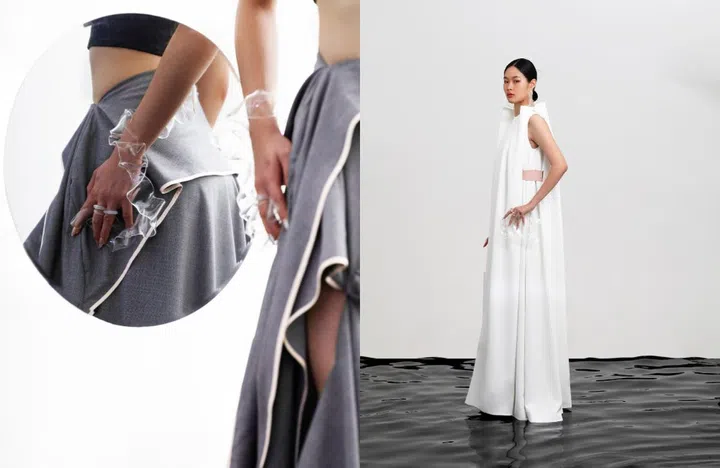 What it is about: Tan's work reimagines fashion through the lens of landscape, topography, and architecture, merging soft brutalism with military precision. Her collection has been designed under her fashion brand, Syllabus of Society, a genderless brand that celebrates diversity and individuality in all their forms.
