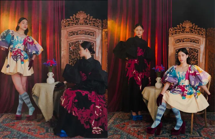 What it is about: The collection attempts to highlight the age-old art of batik for a younger and broader audience by fusing it with Western influence. This collection aims to be dramatic and leaves a trail of ambiguity for the viewer to make a strong impression. It is achieved by drawing colour and composition inspiration from a painting technique called tenebrism. This collection's fusion aspect is further seen in the silhouettes inspired by the Italian Renaissance era, showcased in voluminous skirts and sleeves.