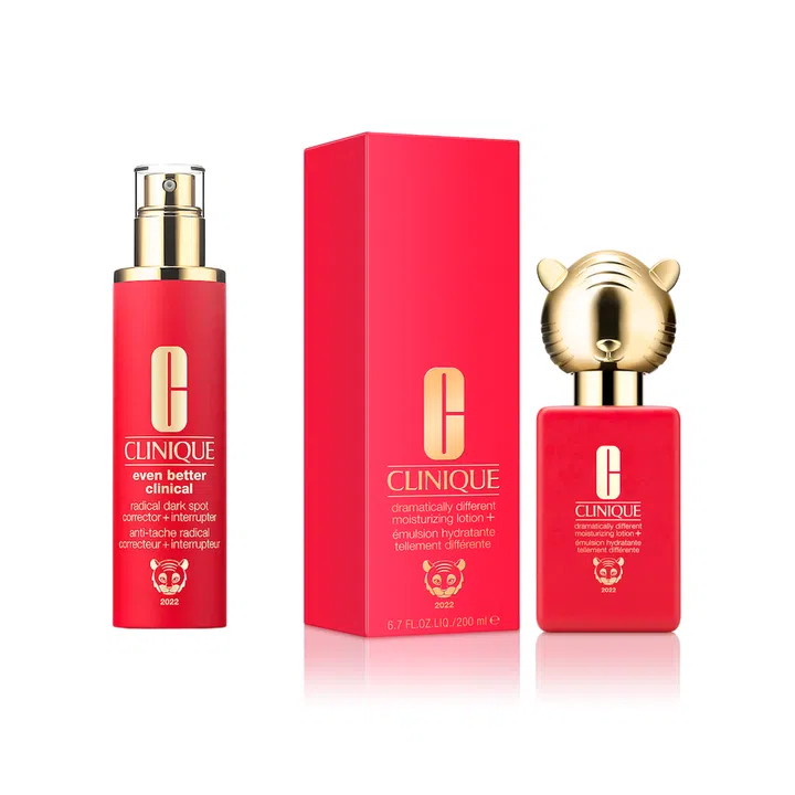 For the year of the tiger, the packaging of Clinique’s spot corrector and moisturising lotion get a vibrant and auspicious red upgrade with gold tiger caps and an all-red bottle. Spot the cheeky tiger head design on the cap of the lotion.