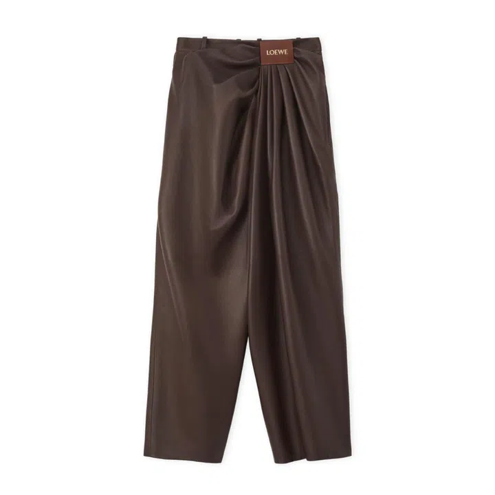 Jonathan Anderson is at it again with a spirited and eclectic collection for Loewe's Spring Summer 2025, featuring a wild mix of tailoring and “wait, is that really what I think it is?” silhouettes. Imagine leather pants cascading into dramatic ripples, a sequined dress with a sculpted waist and exaggerated hips, and a polo sweater that ties itself together with a cheeky open-back detail. As the press note boldly states, “nothing is as it is” when it comes to Loewe.