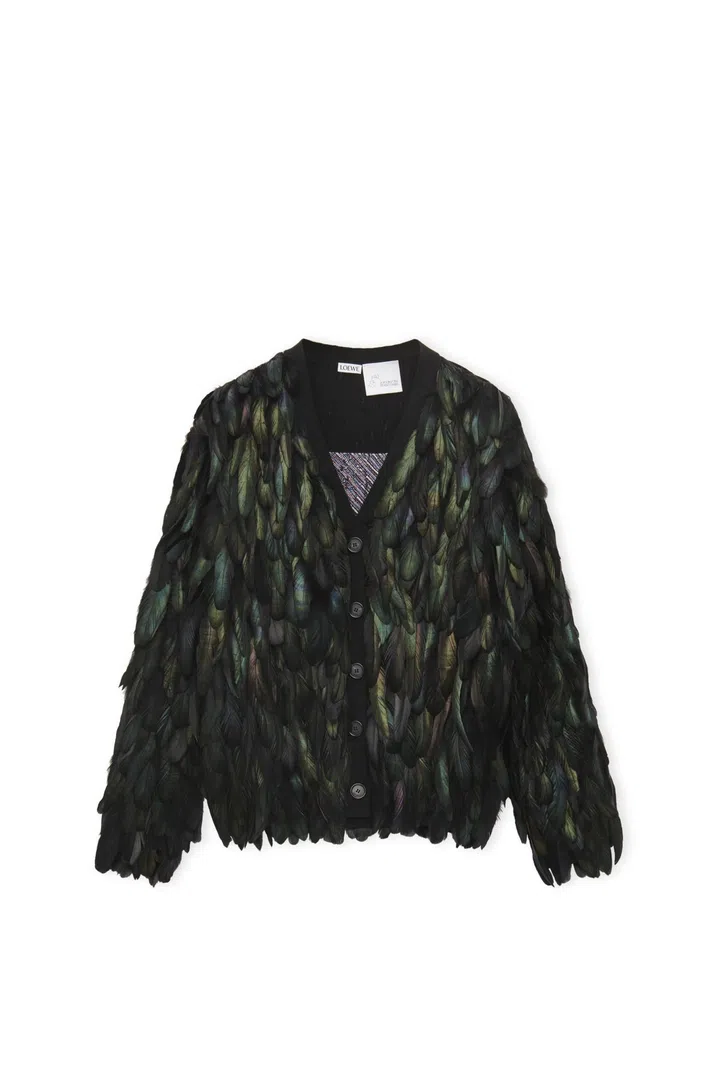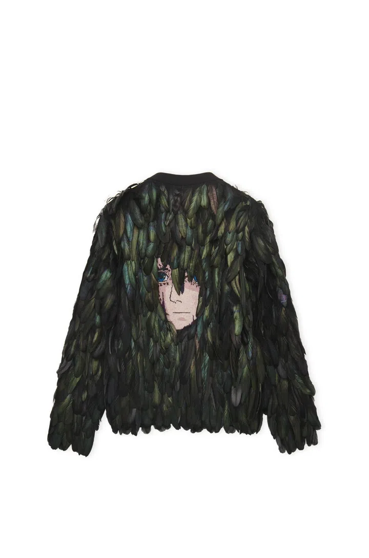 To be sure, the collection is a lovely one to sign off on this heartfelt collaboration. Many of Howl's Moving Castle's key – and supplementary – characters turn up as motifs drawn as leather or shearling intarsia, turned into embroidery on leather or textile, decorated with crystal and stud inlays on leather. Extra effort has been paid to the ready-to-wear section as well, where for instance, downy black feathers blanket a cardigan, mimicking Howl's famous transformation into a monstrous bird-like creature.
