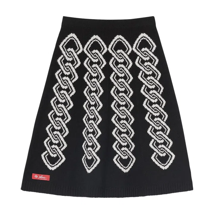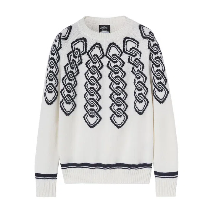 The most distinct graphics are perhaps the Tsunaghi chain-link pattern, a Japanese motif of happiness and connection that's found on cashmere sweaters and skirts, as well as a tongue-in-cheek print of a goat that is the source of the very rare and plush vicuna wool.