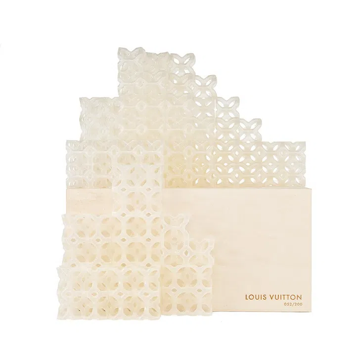 What: A 3D-printed "beehive" made of biodegradable plastics in shapes inspired by the quatrefoil flowers of Louis Vuitton's monogram