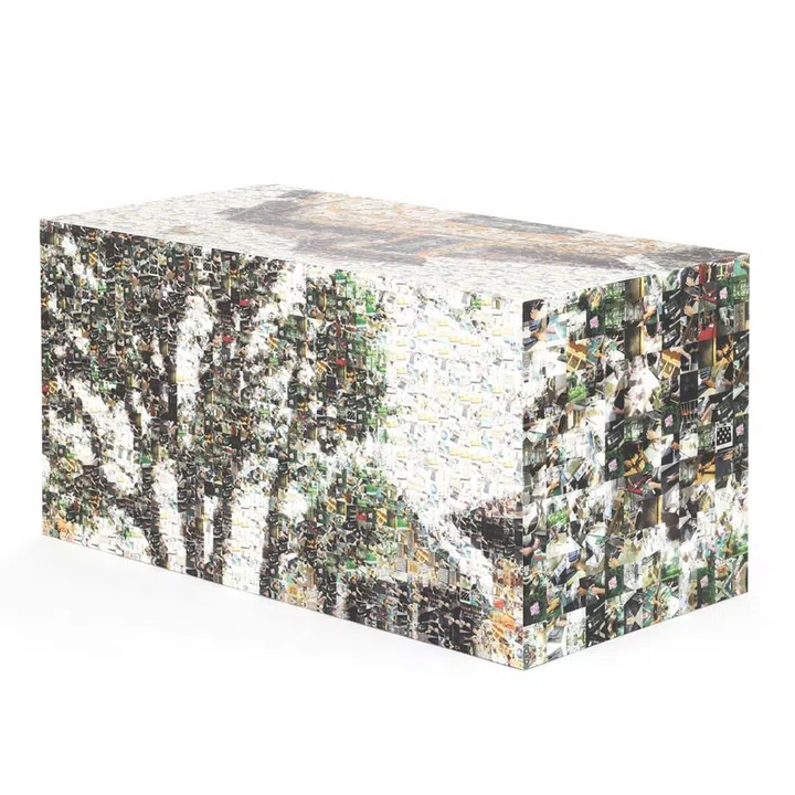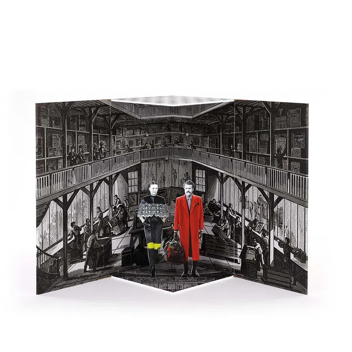 What: A mosaic photo collage of the house's artisans at work, recreating the image of the historic Vuitton family house and workshop