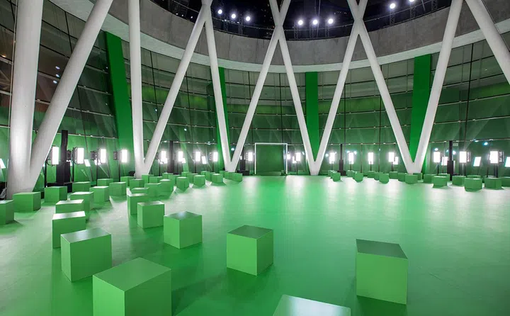 112 was the magic number of health and safety for the night – that being the maximum number of guests allowed for each show. The mainstage was the outdoor area under the ArtScience Museum’s Oculus. Guests were seated at safe distances apart from each other in an area turned entirely the colour of chroma key green.