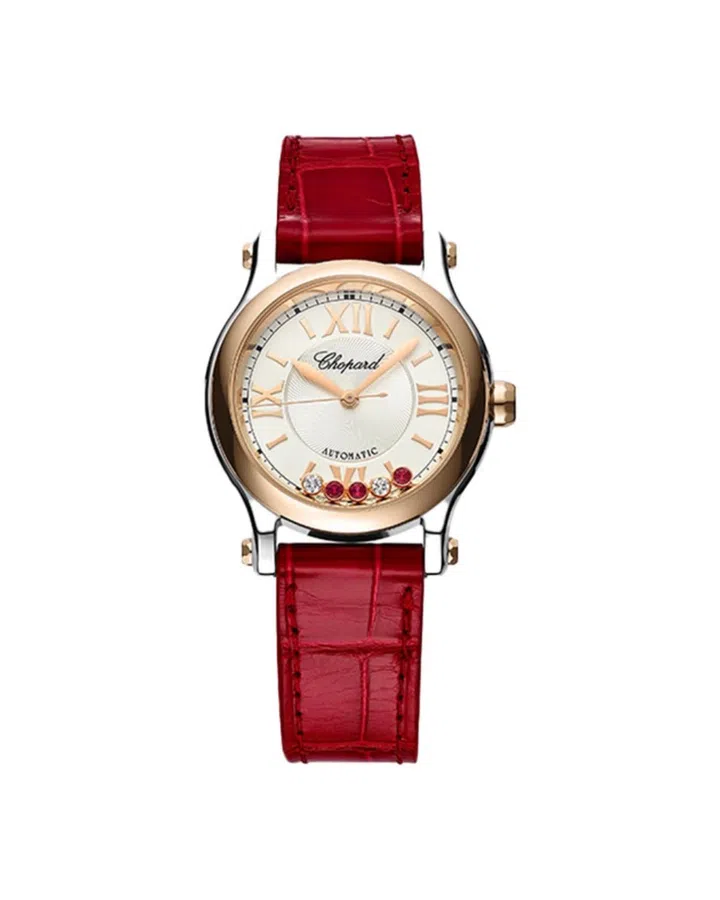 If you appreciate engineering and beauty, this timepiece from Chopard is certainly worth considering. The Happy Sport features elegant curved lines and showcases floating diamonds that dance between two sapphire crystal discs. The addition of deep red rubies enhances its allure while maintaining a refined elegance. But don’t just take our word for it – celebrities like Rihanna and Julia Roberts have also worn similar pieces in recent years.