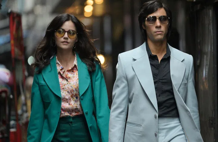 British crime drama The Serpent, set largely in the hippie trail in Asia, made bell bottoms, halter tops, headscarves and aviator shades look boho chic. Based on the true story of charismatic French con artist and murderer Charles Sobhraj (played by French actor Tahar Rahim), who preyed on backpackers, the eight-parter evoked the psychedelic counterculture of the time through its retro set design and costumes.