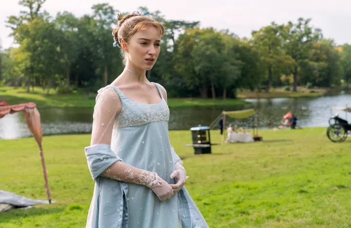English actress Phoebe Dynevor, who played debutante Daphne Bridgerton (pictured), had a total of 104 costume changes in eight episodes of the soapy, gossipy drama. One of the top Netflix shows of the year, Bridgerton was watched by 82 million people within the first 28 days of its release on Christmas last year.