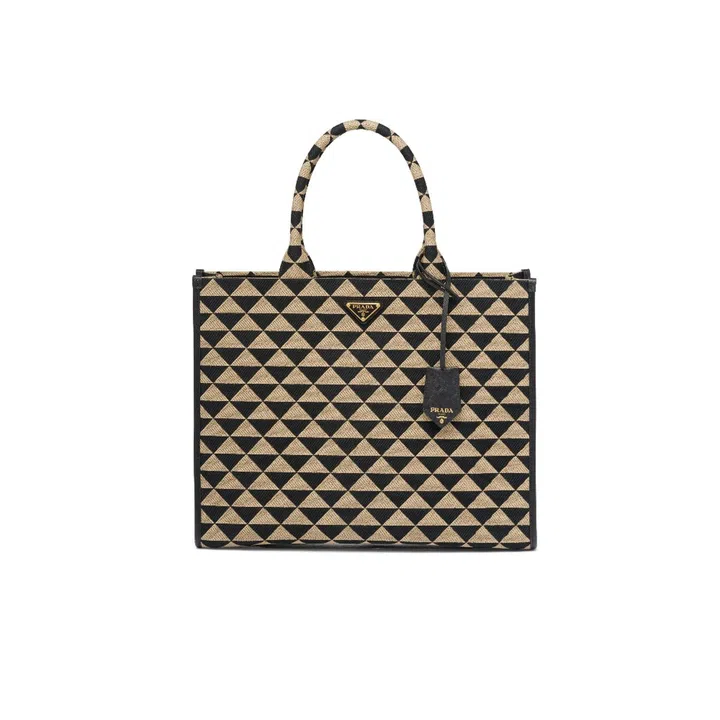 Model and actress Hunter Schafer shows off the Prada bag of the season: the medium-sized Symbole tote. Credit: Prada