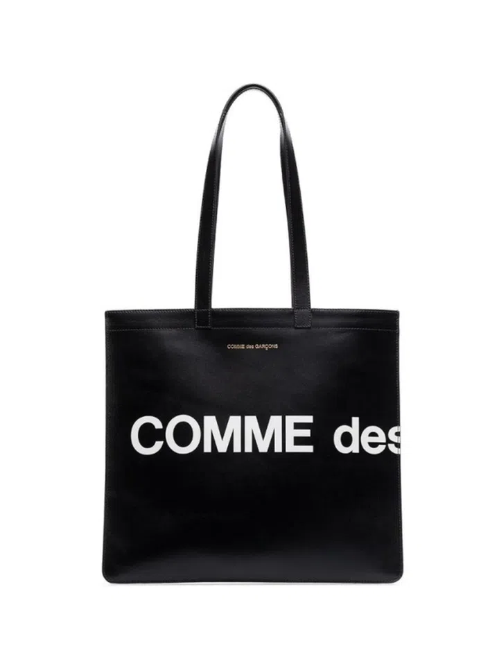 This Comme Des Garcons Wallet tote bag sports a clean, minimalist design that works great as an everyday bag. Crafted from luxurious calf leather, the open-top bag also features top handles, a smooth, matte finish and an internal zipped pocket. Its classic black and white design makes it something you can use through the years without seeming dated.