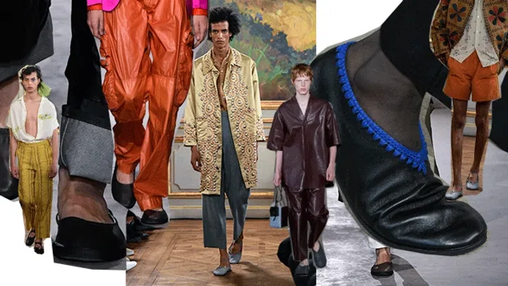 At last month's men's S/S'20 shows however, we've noticed variations of the good ol' ballet flat popping up at various houses, including Dries Van Noten, Jil Sander and new-ish label Bode, which is known for repurposing vintage fabrics into eclectic men's pieces.