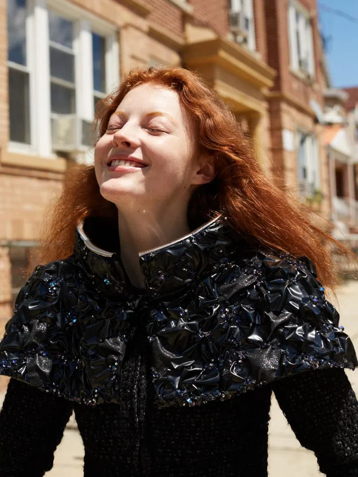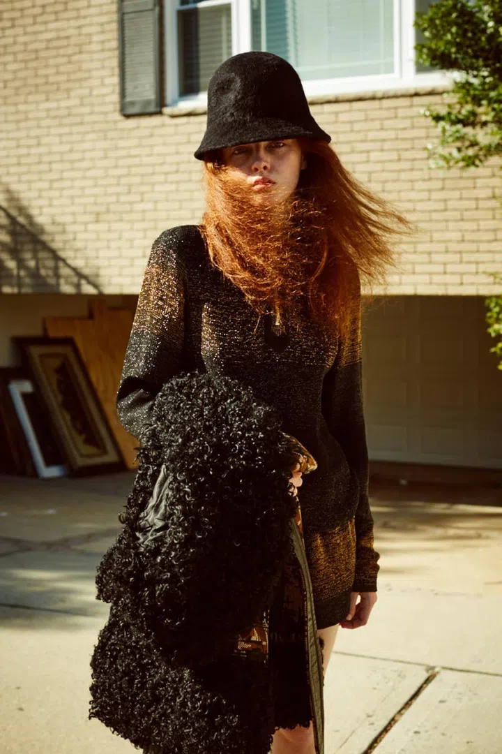By now you ought to know that glitter, sequins and metallic finishes are a foolproof way to add spark to everyday dressing. Model-to-watch laura Hanson sims heats up suburban New York in Fall’s shinest staples.
