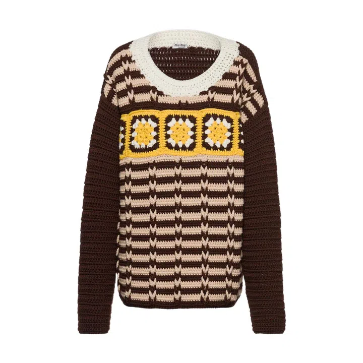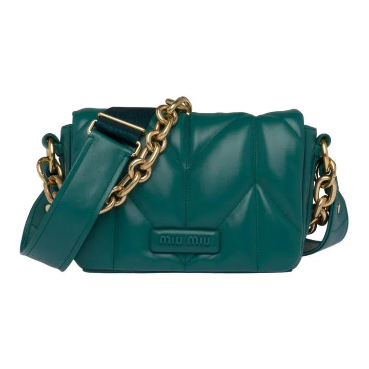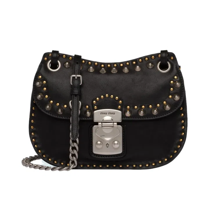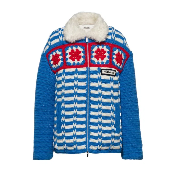 Chic and elegance are as central to keeping warm in this Miu Miu collection with wool knits given an artful charm with handmade crochet patterns inspired by those on classic winter sweaters. Also in the spotlight: the flirty-meets-glamorous Miu Belle bag, which was introduced last year and sports a sophisticated matelasse leather finish, polished metal frame and glossy oversized black clasp.