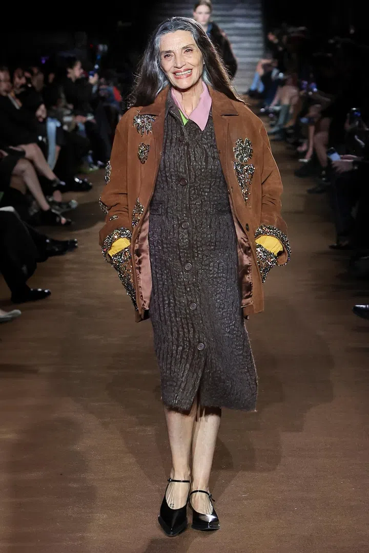 The show's excellent casting too drove home the point of designing for pluralistic wardrobes: there were the usual model mainstays like Gigi Hadid, but there was also Interview magazine's fashion director Dara Allen (who is transgender), actresses Kristin Scott Thomas and Ángela Molina (both in their 60s), as well as Qin Huilan, a 70-year-old Chinese doctor and avid Miu Miu fan.