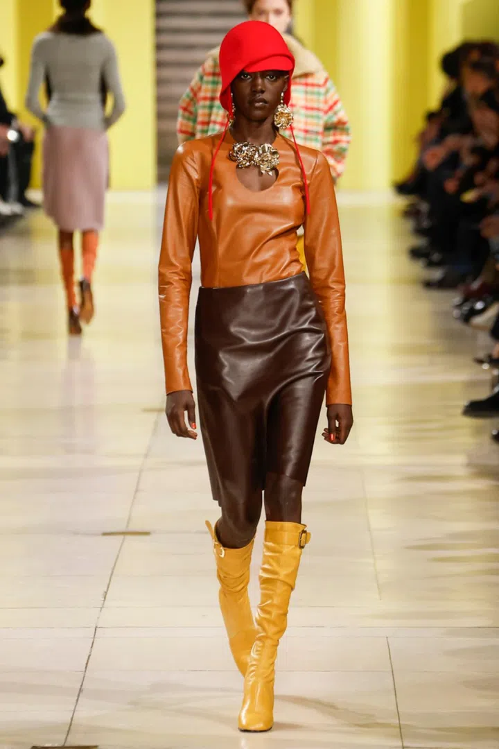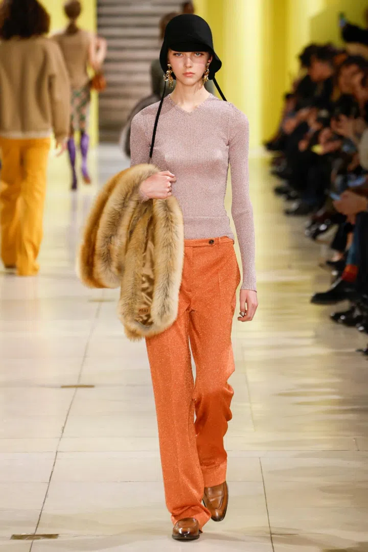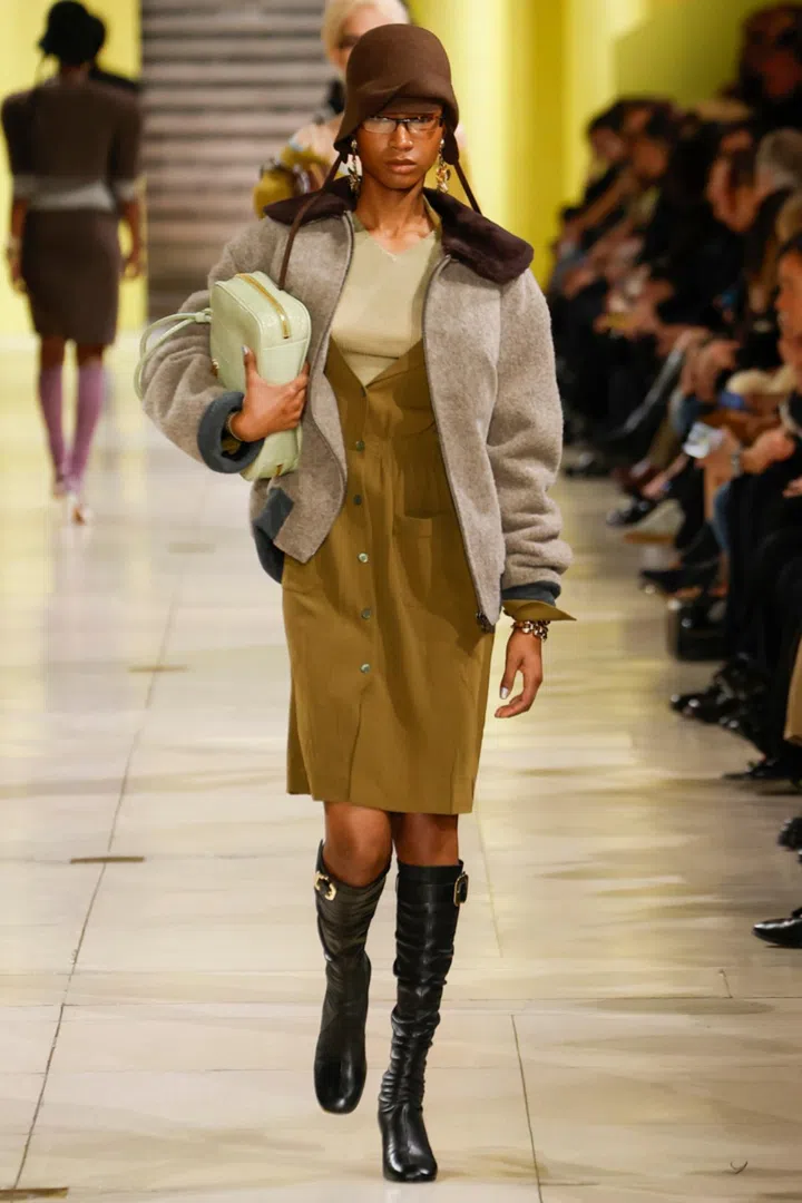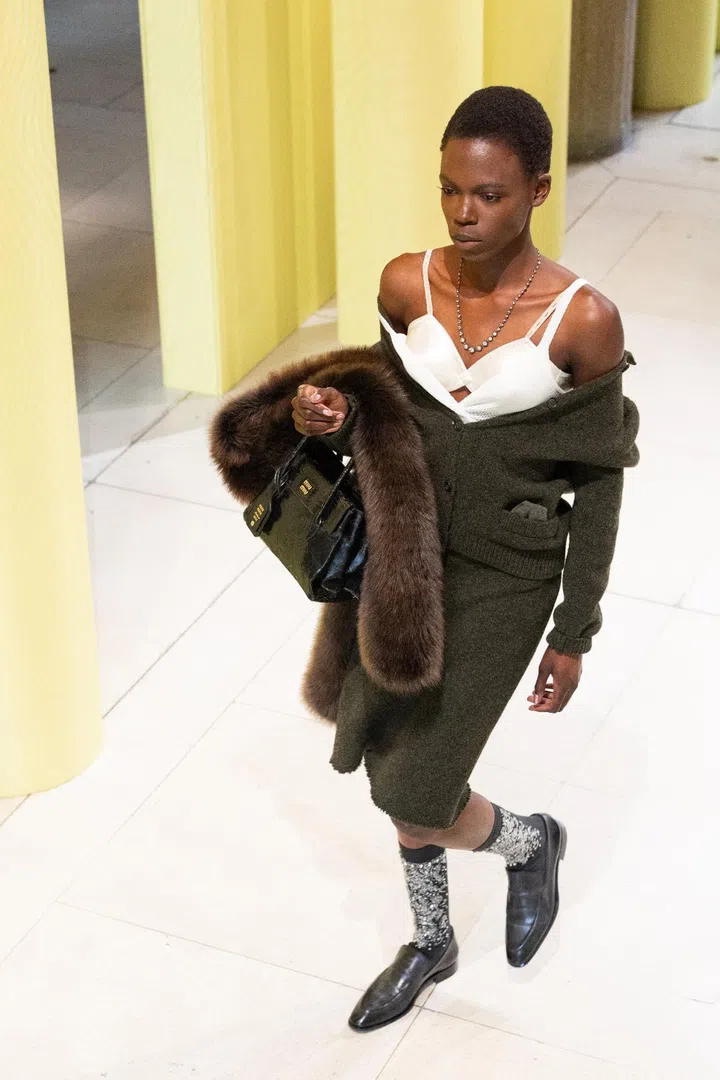 Miu Miu has noticeably taken on a younger vibe over the past couple of years - some would say the turning point was Spring Summer 2022's ultra-cropped takes on wardrobe staples - but this season, hemlines were more mid-length than mini, models sported faux fur stoles and dangled classic boxy bags from the crook of their arms.