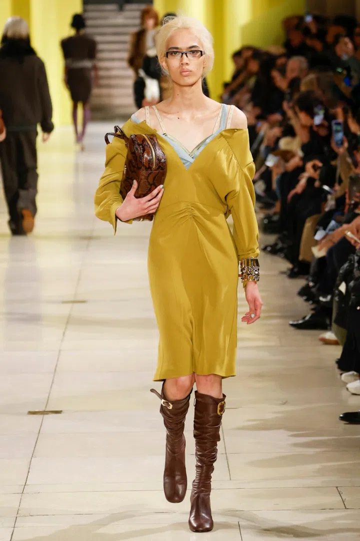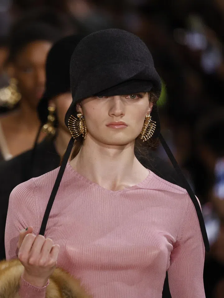 In recent years, Miu Miu has become such a hot sensation that people don't just want to buy Miu Miu - they want to embody the Miu Miu girl (or guy). Just see how a diverse range of celebrities ranging from FKA Twigs to Willem Dafoe have walked the brand's shows previously. This season, more starry faces were added to the roster, including rising rapper Cortisa Star and actress Sarah Paulson, the latter of whom made her runway debut in a cloche hat, off-the-shoulder dress starring those satin bullet bras that are likely to be a hit from this collection.