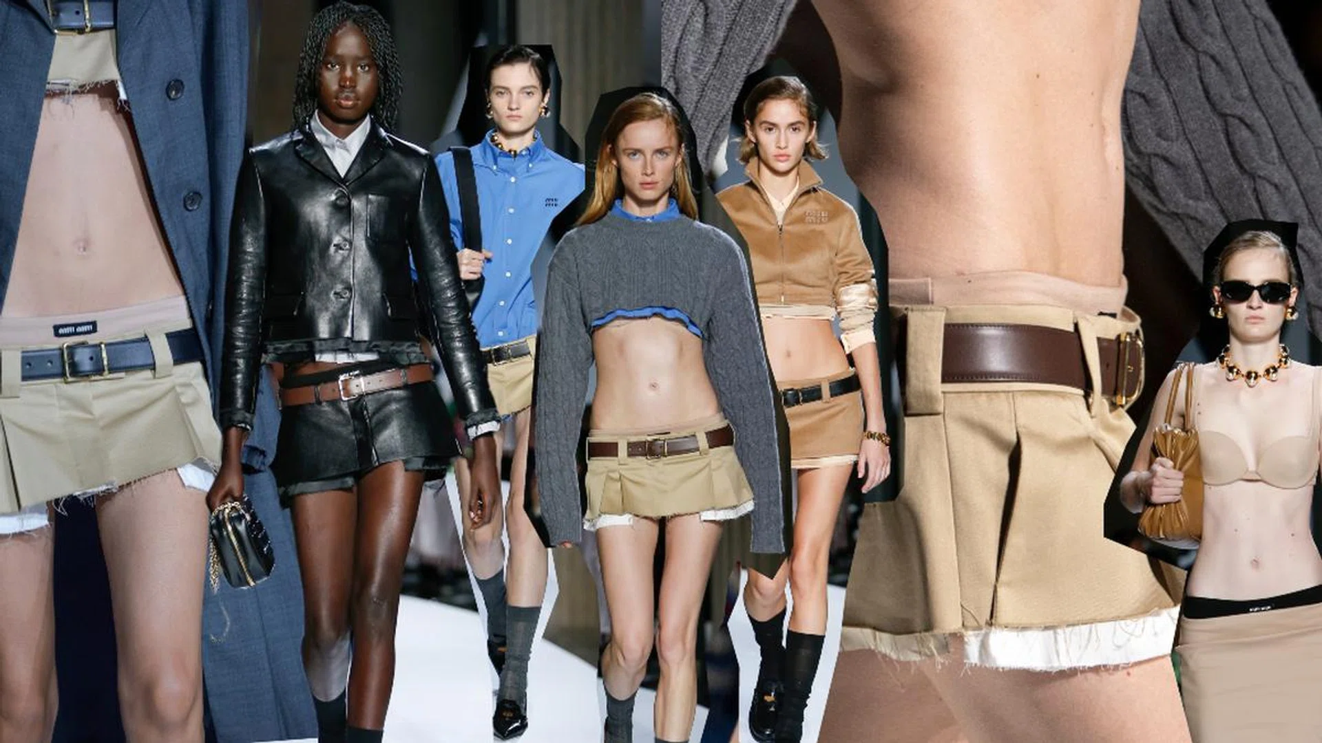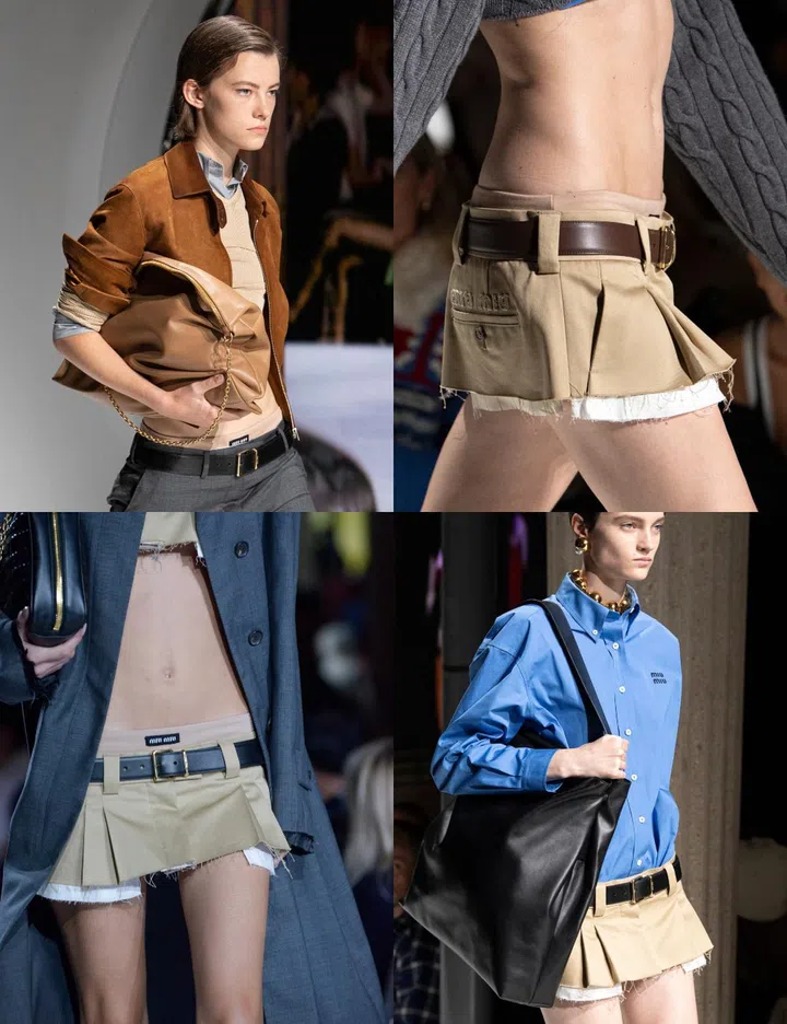 Miu Miu takes the micro approach to tailored skirts, shortening the lengths to 20cm.