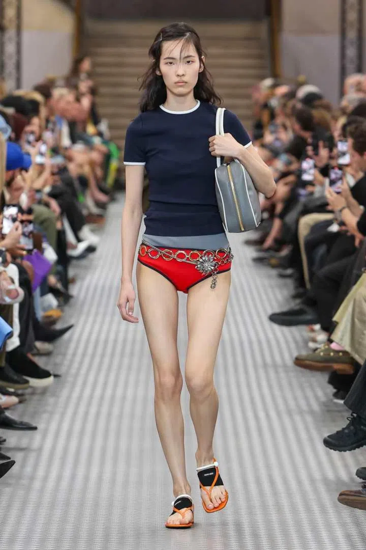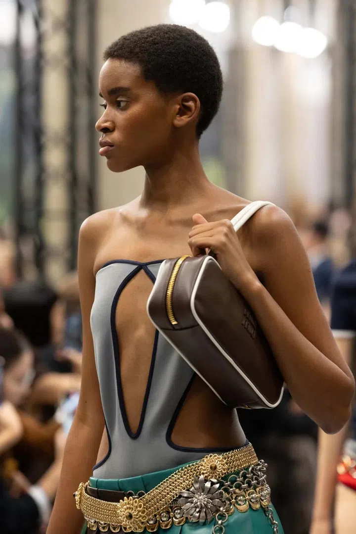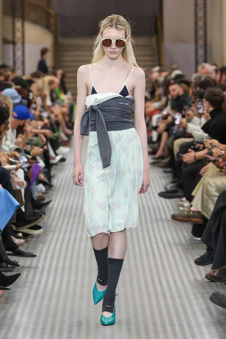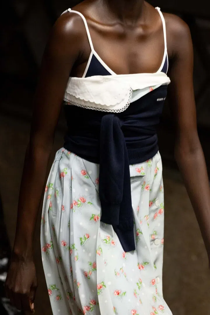 “Wearing things in the wrong way - it was a way of being spontaneous," said Mrs Prada in interviews after the show. If anything, the so-wrong-its-right irreverence seen at Miu Miu could also be read as a way to battle misinformation and algorithmic ways of dressing (a topic the designer also addressed at the latest Prada show).