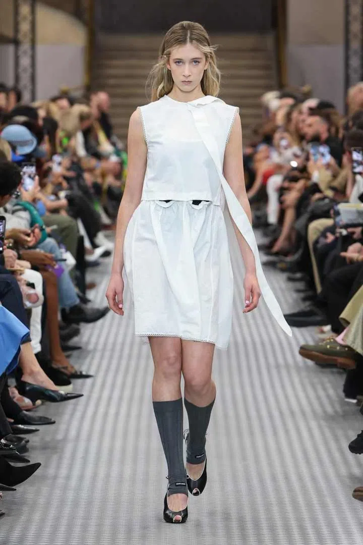 This explains the seemingly haphazard styling; the collection featured a mix of child-like elements like bloomers, and pinafores, alongside pleated skirts, diner dresses, and retro windbreakers, creating a disjointed blend of styles that left viewers questioning the intended occasion and the wearer’s intent - exactly the effect the designer is known for, and wanted to achieve here.