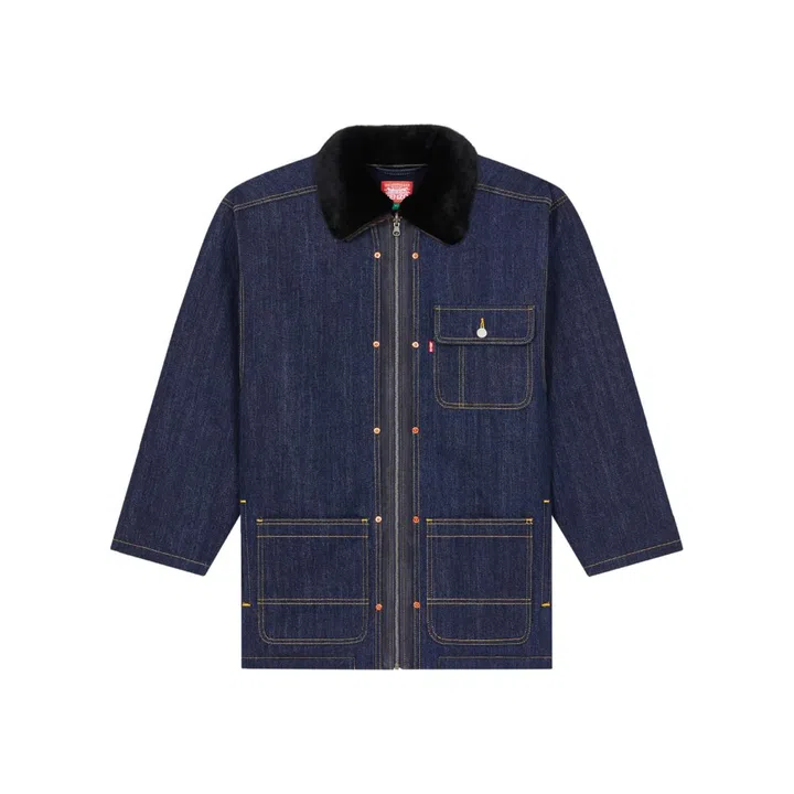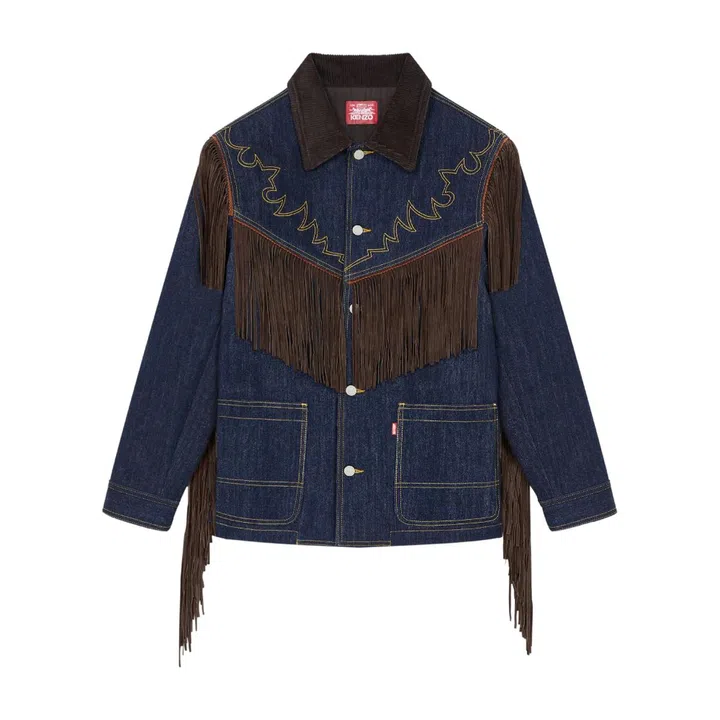 The designs in the Kenzo x Levi's collection are primarily crafted in Kaihara premium Japanese denim, which is known for fusing traditional and modern techniques.
