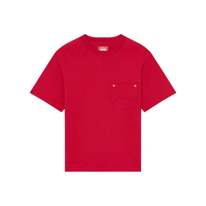 The lineup extends to tops, dresses, and jeans. A denim shirt adorned with chain stitch and sawtooth pocket detailing makes a statement, while a red and off-white T-shirt reimagines a classic Levi’s shirt pocket. Sleeveless button-down denim dresses, inspired by Kenzo Takada's 1980s designs, offer a versatile layering element in dark blue or the Kenzo Jeans floral print.