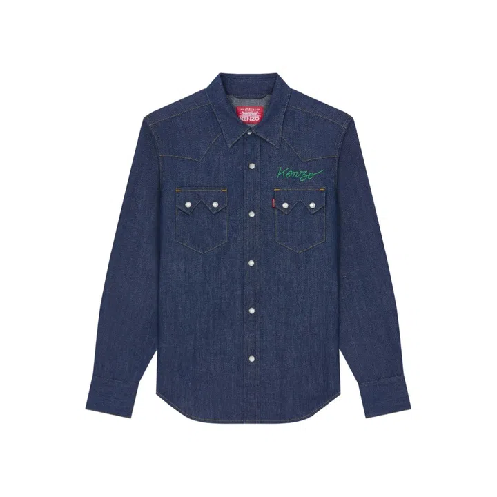 Pieces in this collection display a fusion of the classic Levi Strauss & Co. "two horse pull" emblem with the Kenzo logo. The metal Levi’s shanks don the emblematic Boke flower, a signature of Kenzo, and the back pockets feature the unmistakable Levi’s arcuate stitching. For a vintage touch, embroidered Kenzo logos grace the pockets, reminiscent of the ‘name badges’ sewn onto factory workers' uniforms in the early 20th century.