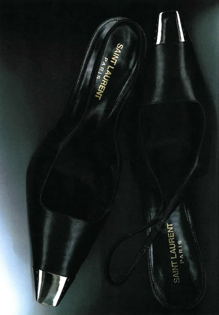 Saint Laurent by Anthony Vaccarello Blade leather slingback pumps with metal toe cap, Saint Laurent