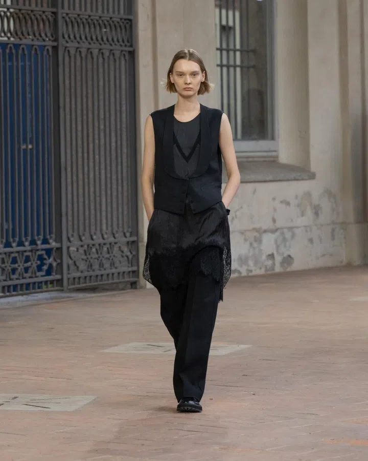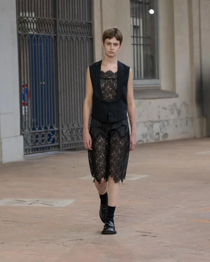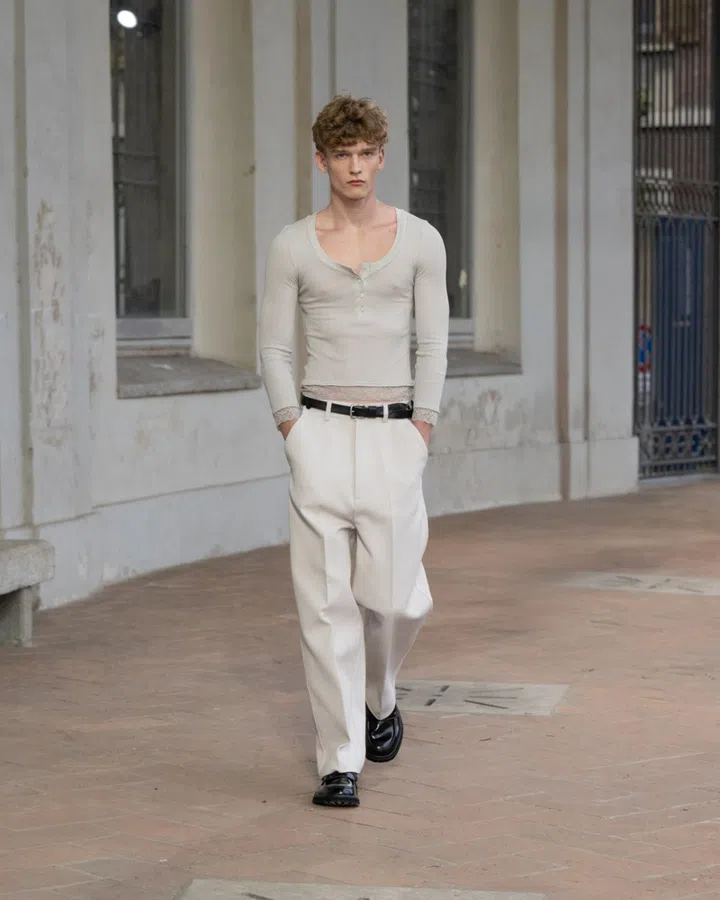 But don't be misled into thinking this co-ed collection of 50 looks is merely about streetwear. Pompilio’s vision dives deeper into the nostalgia of youths exploring the wardrobes of yesteryears – something Gen Z can certainly relate to, given their love for pre-loved shopping.