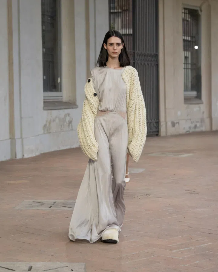 Where: The Rotonda della Besana, a former cemetery in Milan built between 1695 and 1732, served as a striking venue where rows of yellow backpacks for attendees sit atop the sunny yellow seats lining the space.