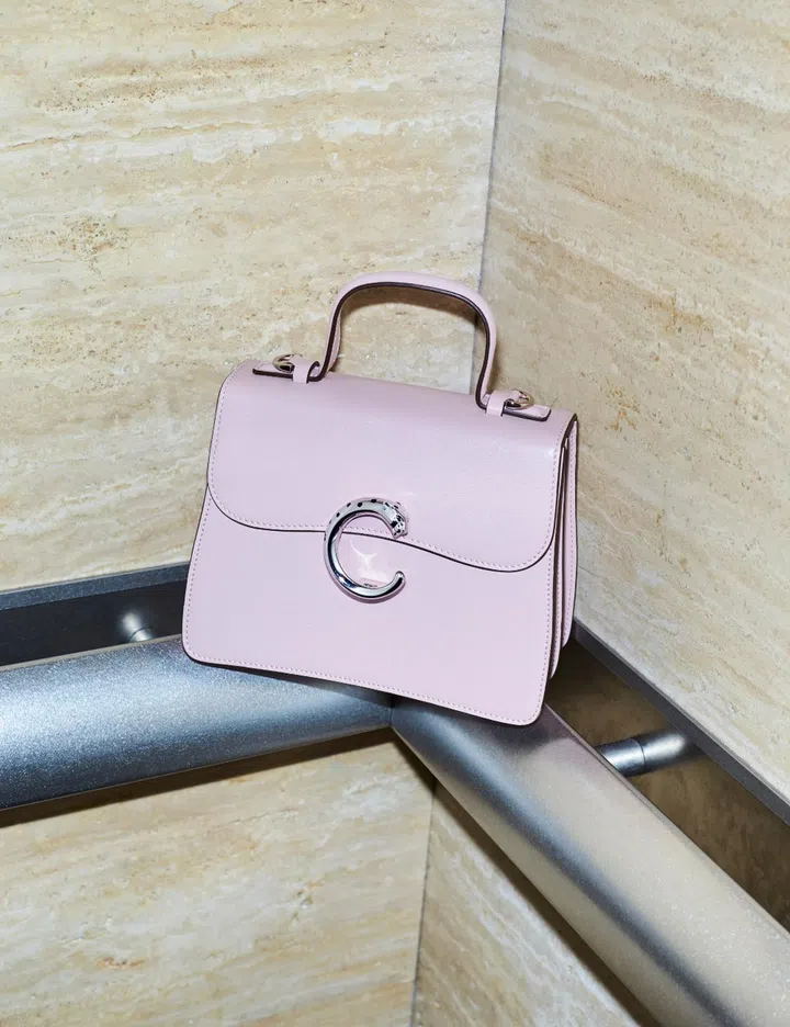 The bag possesses minimal details to highlight its clasp, which comes in the form of a panther – one of the maison’s most cherished emblems established in the ’40s by artistic director Jeanne Toussaint. This rendition of the majestic feline is a collaboration between Cartier’s leather goods and high jewellery studios, sculpted into an elegant “C” shape in golden or palladium finishes with black lacquered spots. Adding to the Panthere de Cartier’s day-to-evening versatility: its compact trapezoidal shape and detachable crossbody strap.