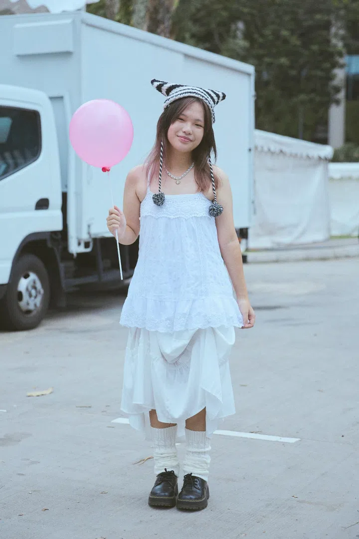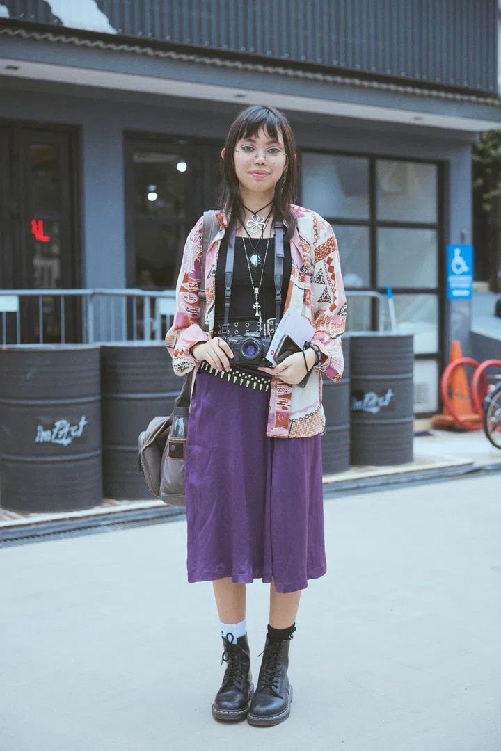 What she wore: Blouse and skirt from Carousell; Dr. Martens boots; and accessories that are either from Peninsula Plaza or Shopee