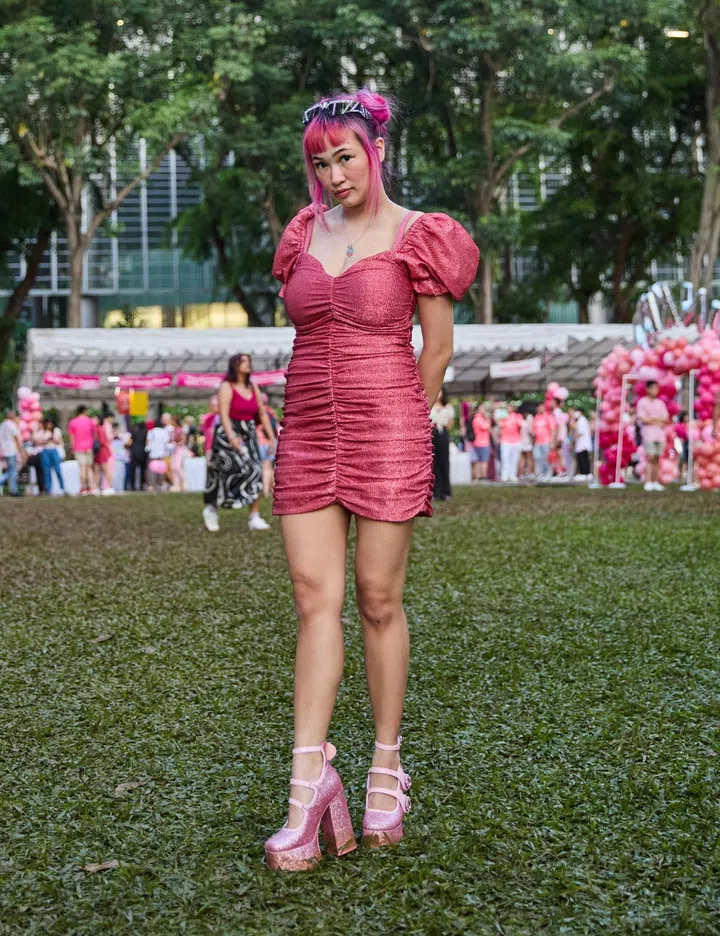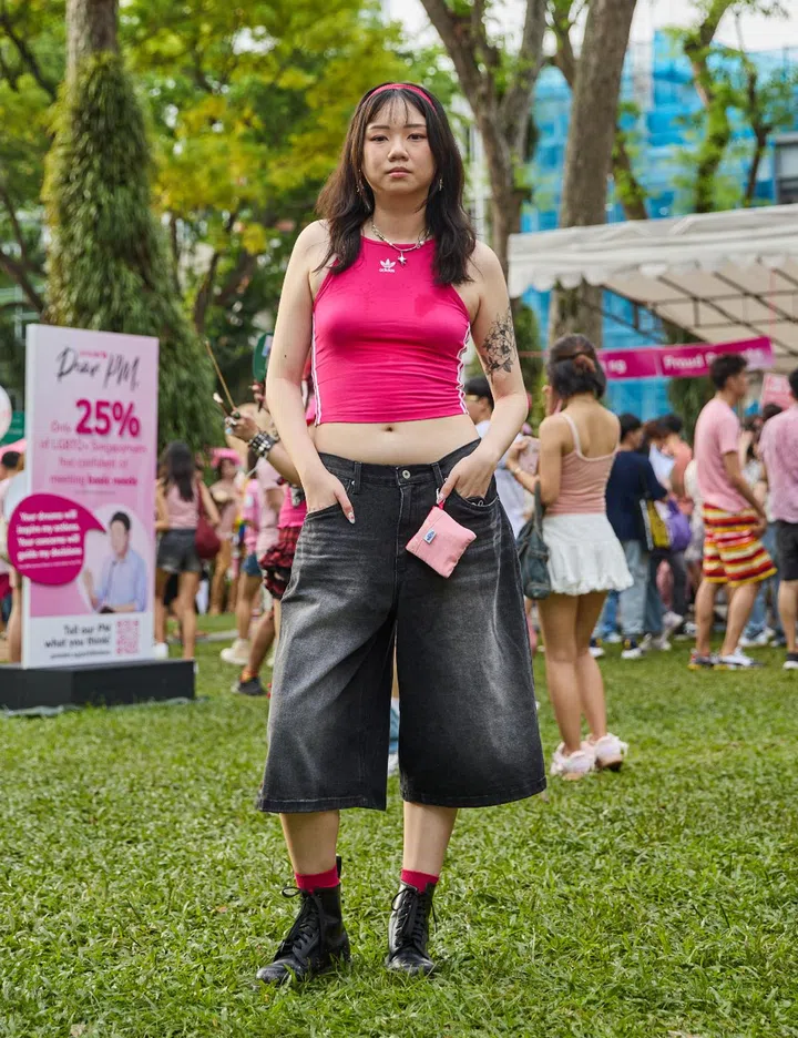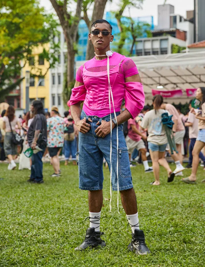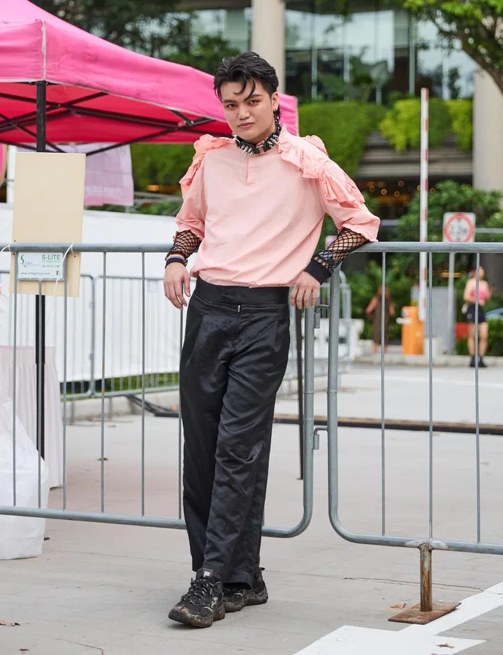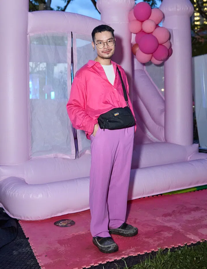 The inspiration behind his outfit: "I just picked out everything pink from my wardrobe. Initially, I wasn't planning to go to Pink Dot because none of my friends are Singaporean or PR, meaning I'd be alone there. However, at the last minute, my friends said they would wait outside, so I threw together whatever I could find."
