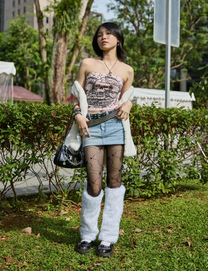 His fit: “I'm wearing a fur vest from a shop in Wufenpu, Taiwan. My top and shoes are from Shein, my skirt is thrifted, and my bag is from The Dream Vault. All my other accessories are from Shopee.”