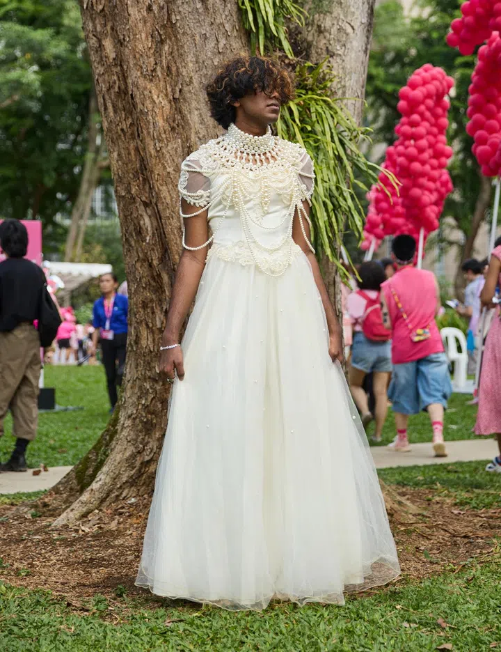 The inspiration behind their outfit: "I had no specific inspiration; it was a spur-of-the-moment decision. The dress gave me Disney princess vibes, so I went with that vision for Pink Dot."
