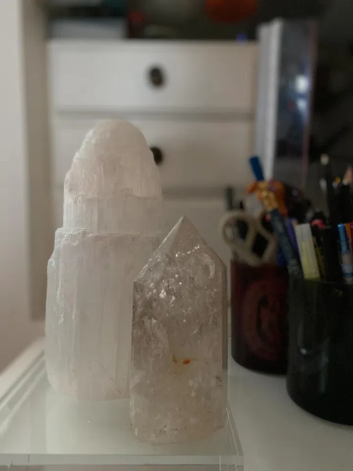 "I've also got some Selenite for protection and good luck as well as crystal quartz to clear the mind of negativity."