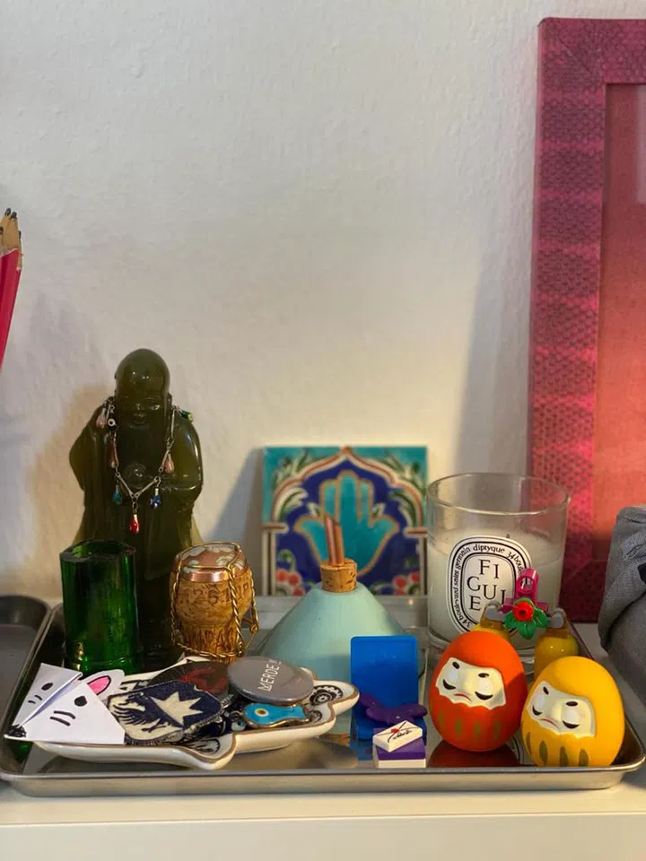 "I also find great comfort in having everything I need tucked in nicely organised spaces around me, even knick knacks. Here, a few special items that all have personal significance to me."