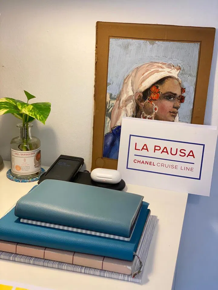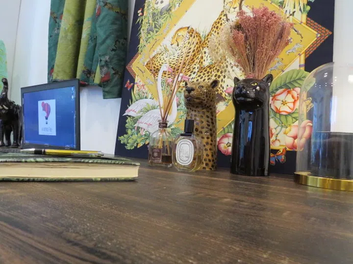 "I also can't be without my favourite Italian home fragrance, my perfume and my vintage working mannequin. As you can see, everything around me has a tropical touch."