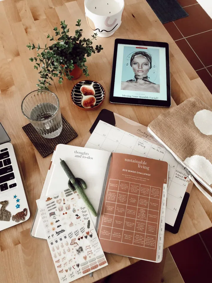 "For an efficient day, I always need my planner to write my to-dos for the day and tick them off as I go as well as my desk planner to see my month at one glance. Some other work from home essentials: water in a bottle to stay hydrated, coffee to perk me up and lots of snacks to keep me going throughout the day."