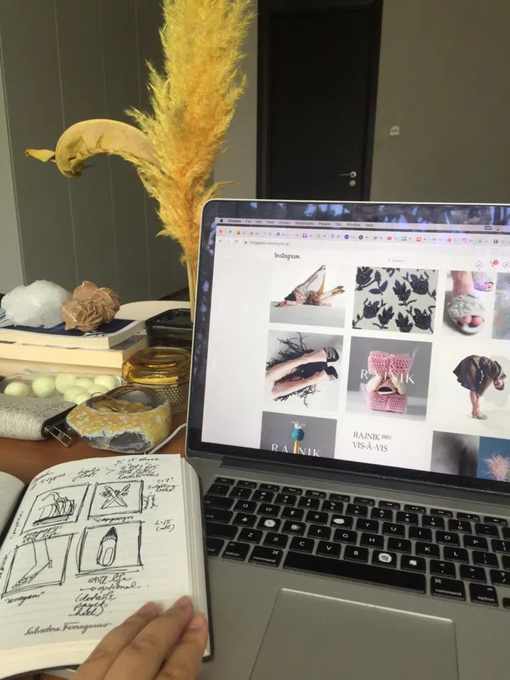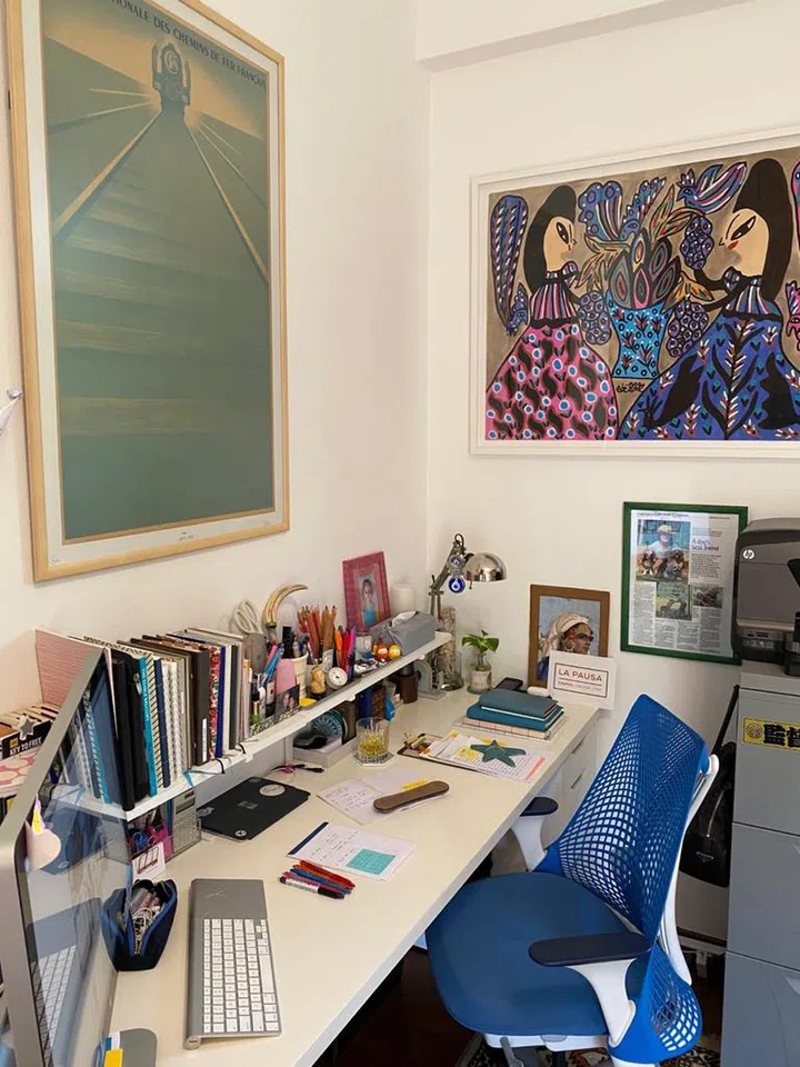 “I have converted our living room into my new office. I love organised and colourful spaces – which is why I keep only essentials on my desk like my PC and notebook. I manage my customers, suppliers and often come up with inspiration for my new projects at my desk."
