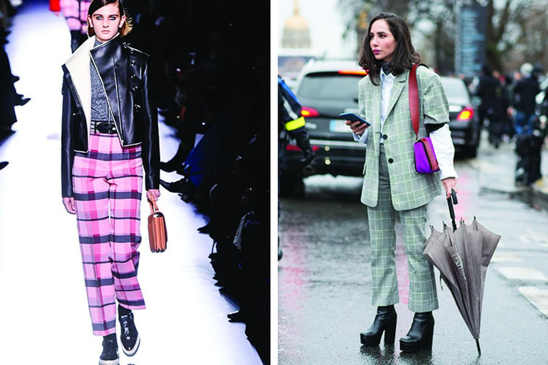 In Paris, designers showed easy plaid separates like a see-through plaid sweater at Esteban Cortazar and pink plaid pants at Hermes, while the head-to-toe plaid trend continued on at Sacai and Veronique Branquinho.