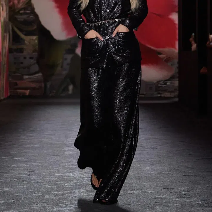 Debuting on none other than Gigi Hadid at Chanel’s S/S’24 show, these pants offer a playful twist on the classic black trouser silhouette, infused with plenty of extra glimmer.
