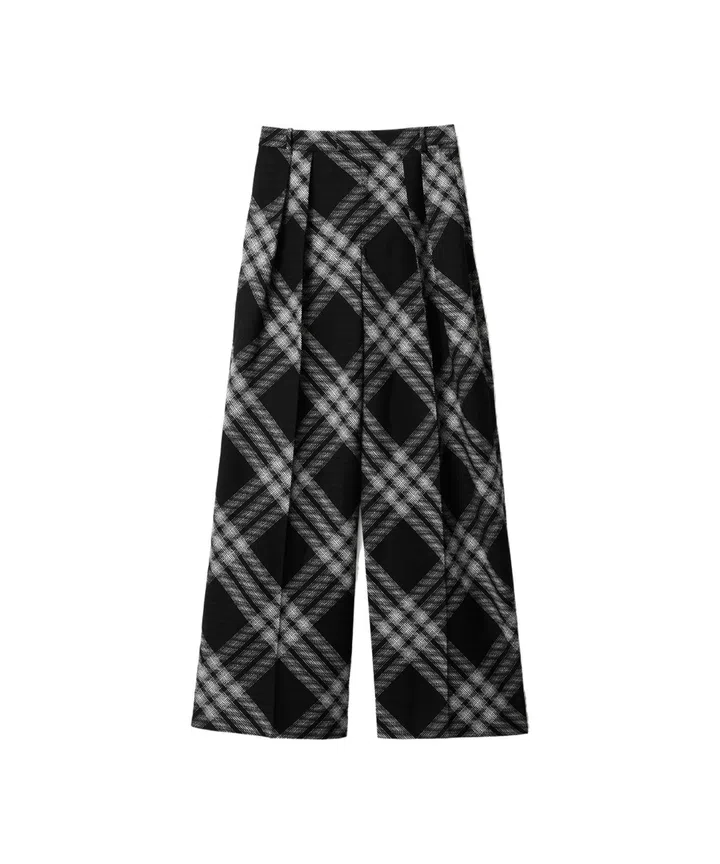 While the chequered print typically screams "office vibes," Burberry's pleated wool twill edition flips the script with a monochromatic hue for effortless coordination, whether you're clocking in or kicking back.