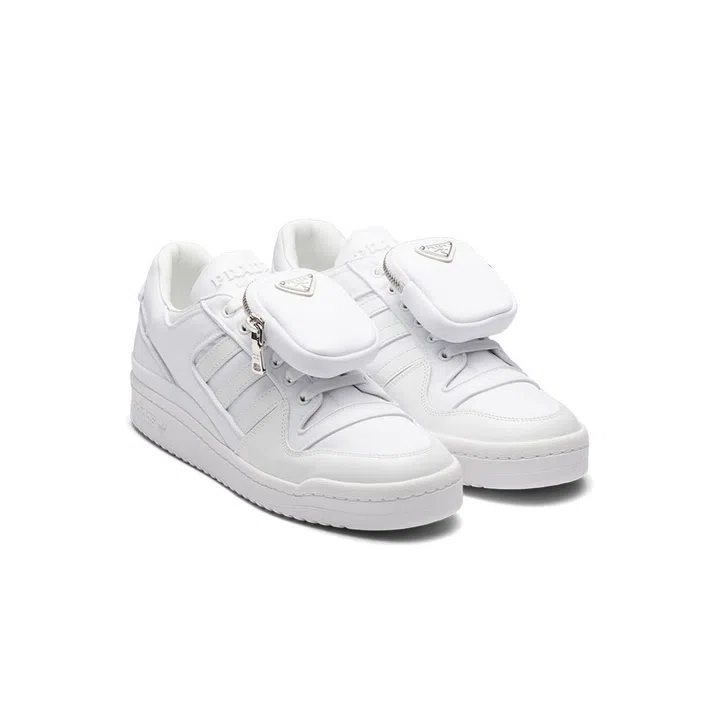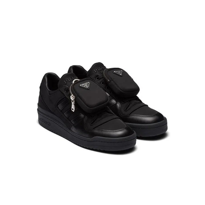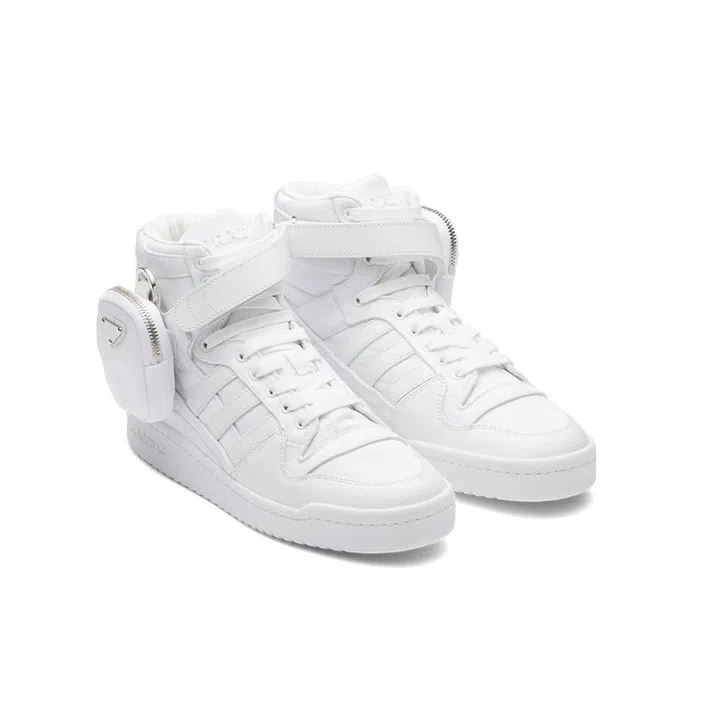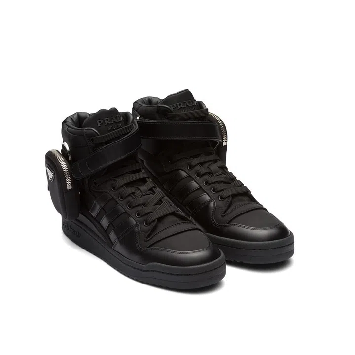Important for sneakerheads: the key style in this collection is the Adidas Forum, a basketball design first launched in 1984. Here, it gets the Prada treatment in two ways. First: luxe materials like brushed leather and Re-Nylon. Second: removable pouches that echo the Italian house's bags and accessories.