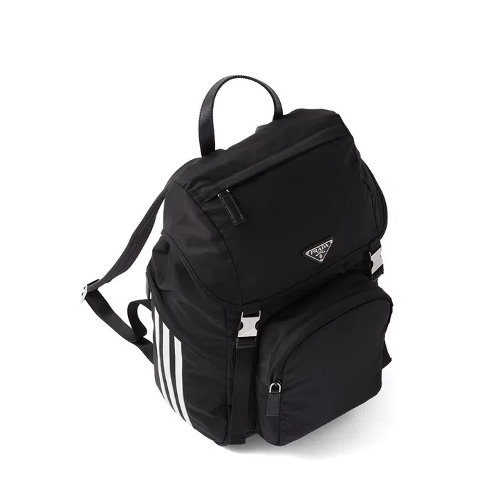 This year, though, the two brands are working together in a more extensive fashion with the launch of a new collection that, for the first time, includes ready-to-wear. The new, mostly black and white collection places a focus on Prada's sustainably upcycled Re-Nylon material, and (most excitingly!) mixes brand icons. Adidas' famous three stripes and Prada's enamelled triangle share space on a number of pieces – opposite ends of a bucket hat or the sides and crest on track jackets, for example.