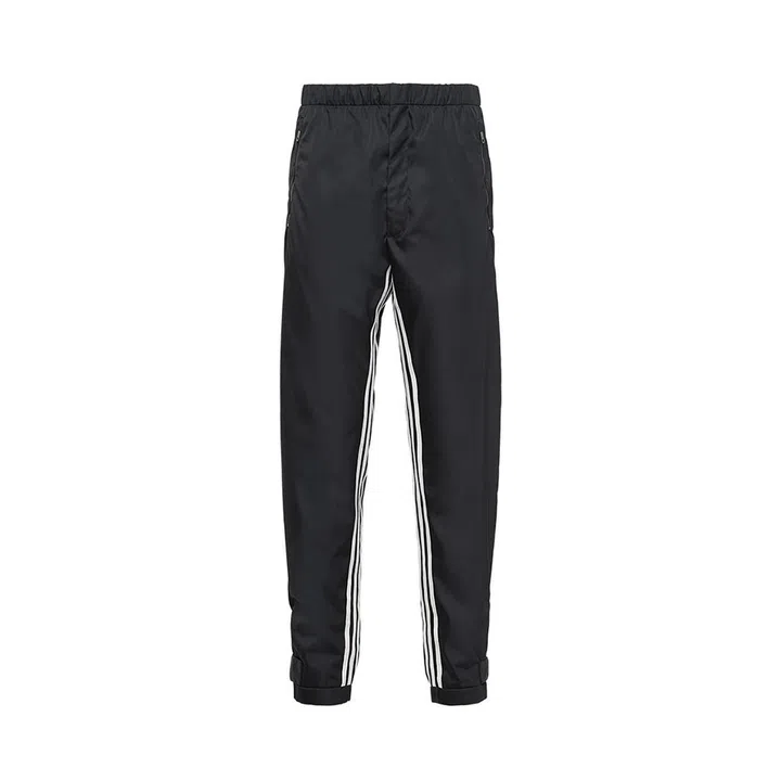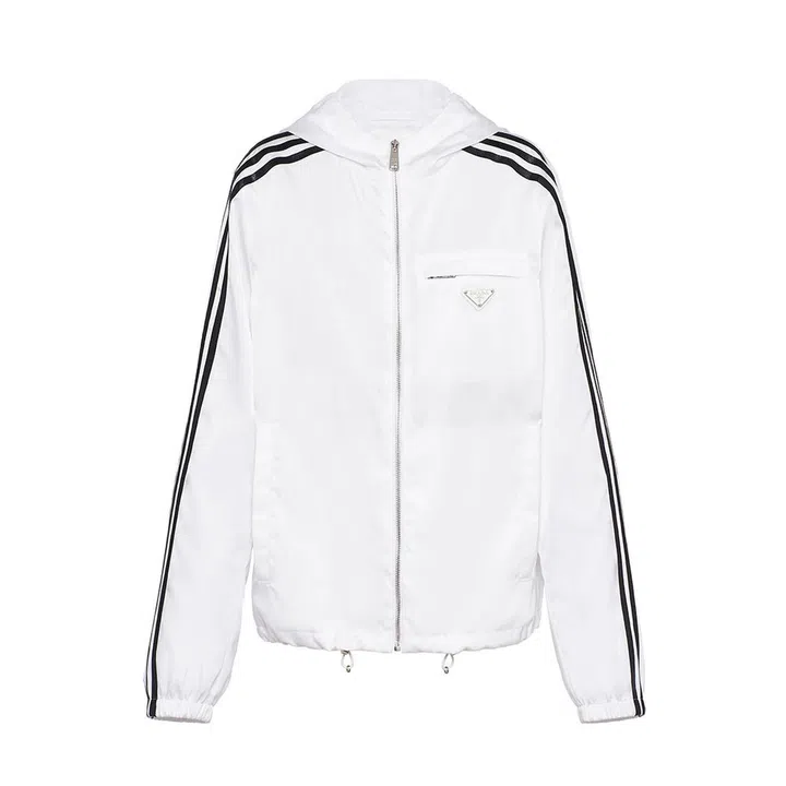While Prada and Adidas have worked together on sneaker and bag designs before, this is the first time the two are releasing ready-to-wear. The focus, naturally, is on track jackets and pants that bear the German sports brand's three stripes and the Italian luxury house's enamelled triangle.
