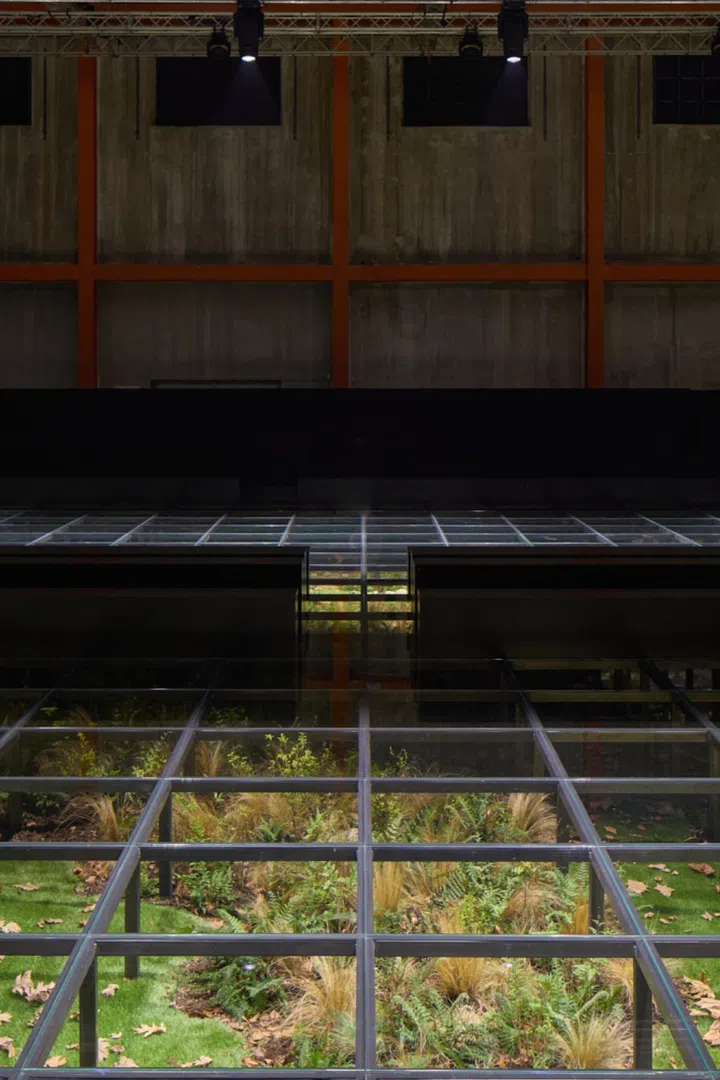 Where: The crowd had, as usual, gathered at Fondazione Prada in southern Milan. The scenography replicated the eerie atmosphere of the Prada menswear Fall/Winter 2024 show in January. Designed by AMO, the research arm of the Dutch architecture studio OMA, the glass runway was suspended over a forest floor with a meandering creek, creating a dystopian and surrealist ambiance.