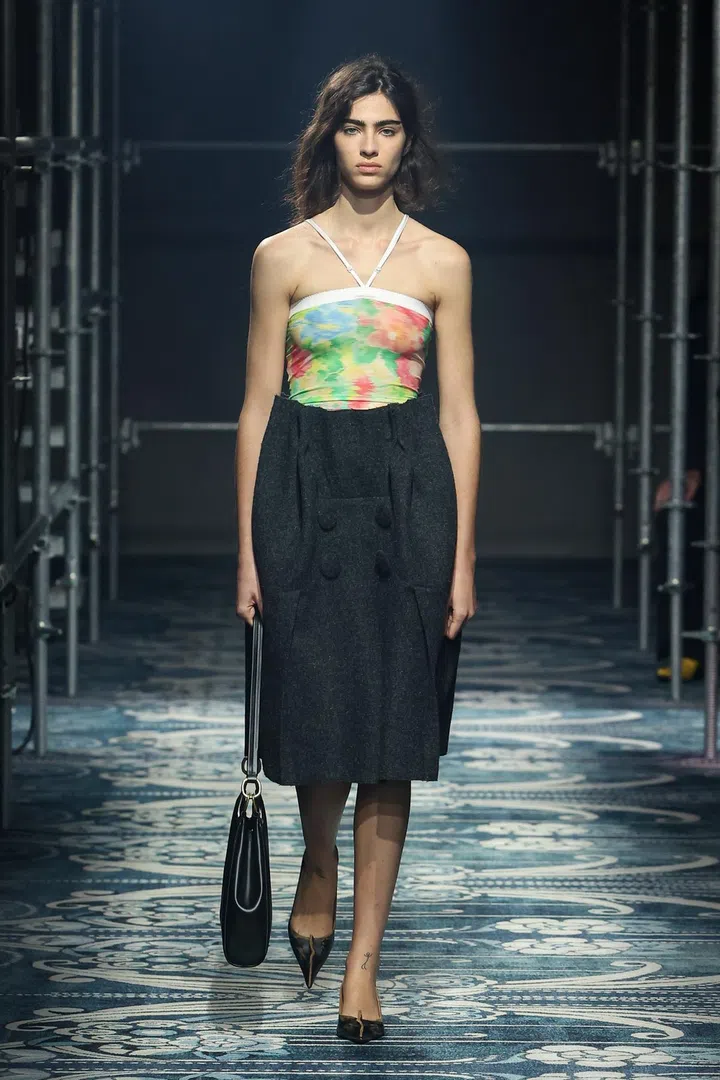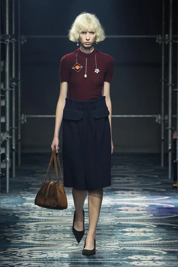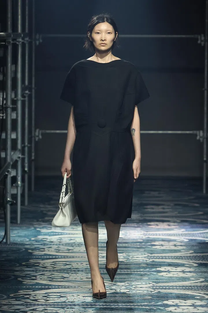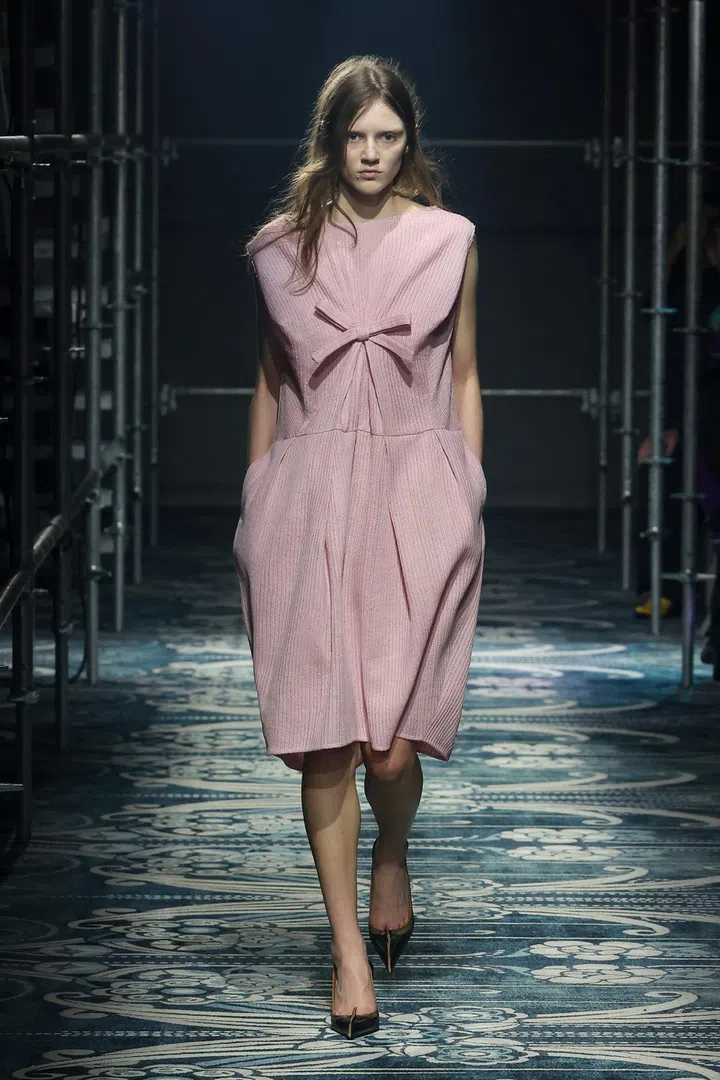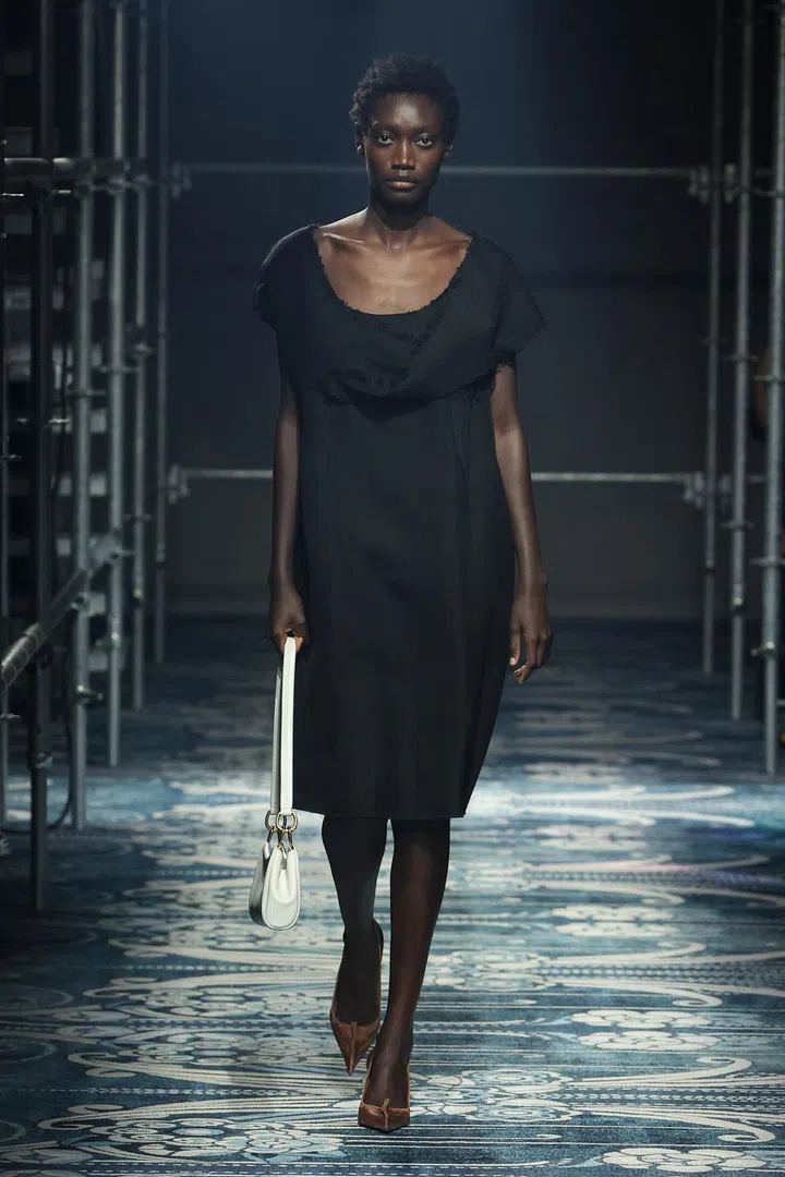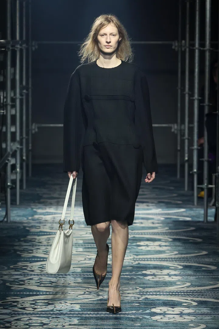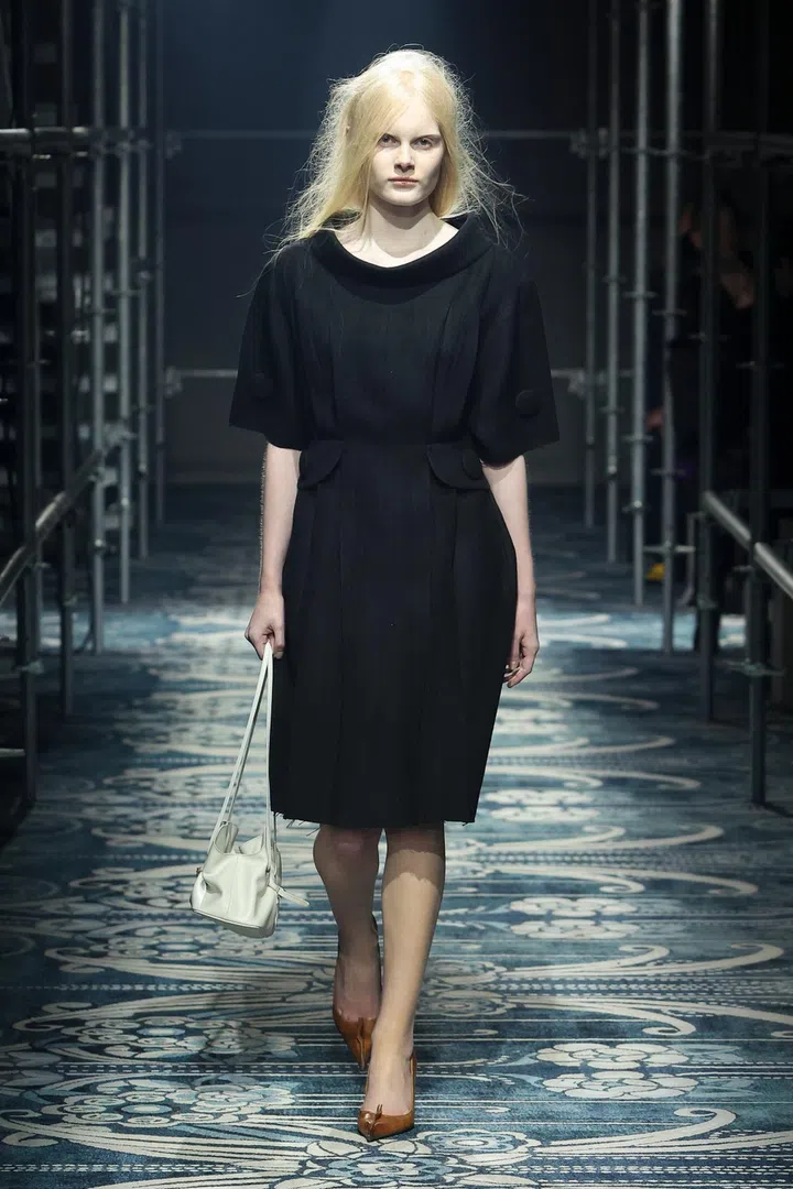 The show opened with a series of four black dresses - but make no mistake, they're not your classic LBDs (little black dresses). Instead, these looks hung loosely on the frame, with critics using words like "mousy" and "frowsy" to describe them - but in a good way. You see, the notion of "ugliness" has long been in the Prada DNA - Mrs Prada has always made it her mission to question stereotypes of beauty. In their bagginess, these dresses almost seemed to say, "so what?" to traditional silhouettes deemed more flattering for the female body. They served a woman who - genuinely - dresses for herself.
