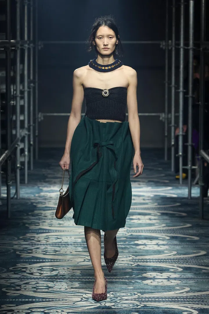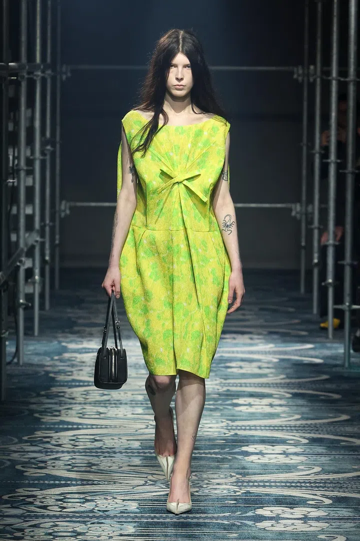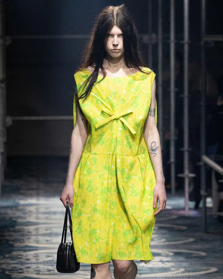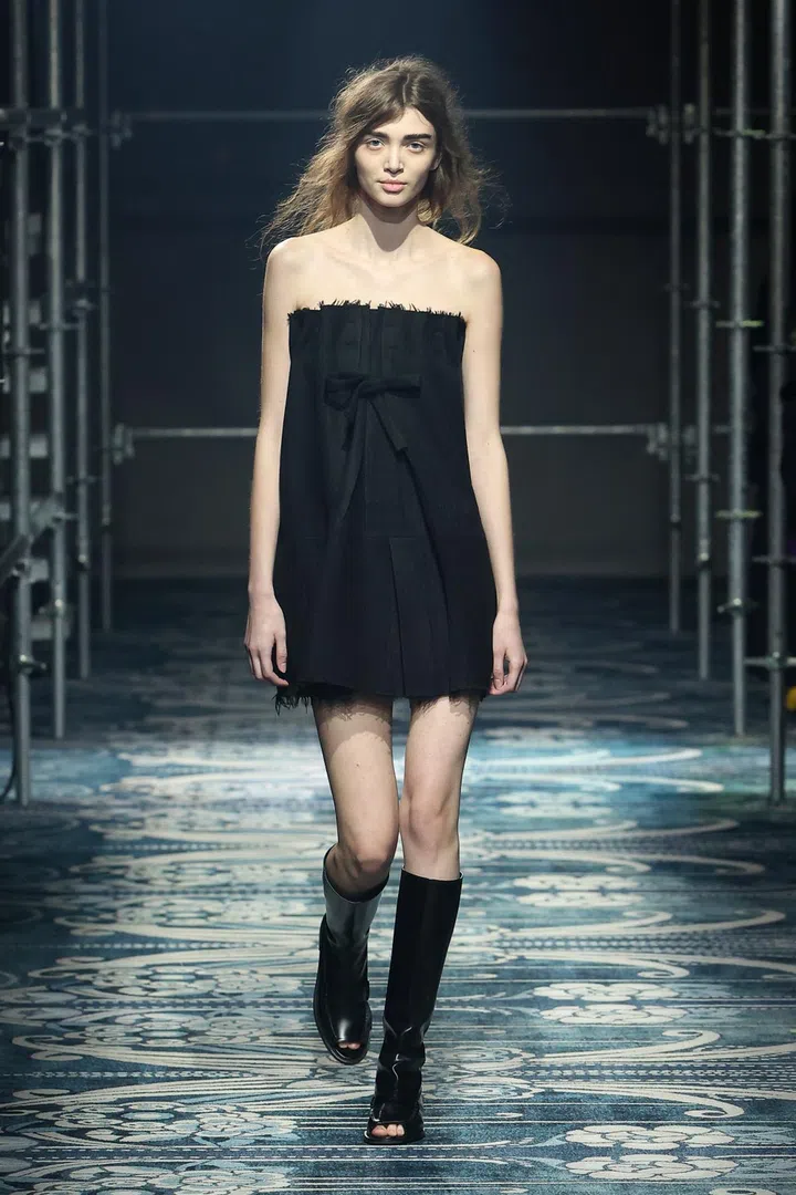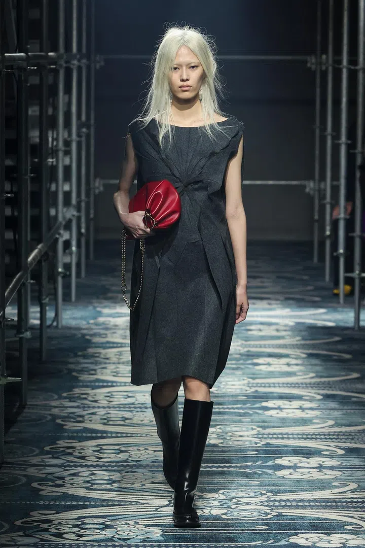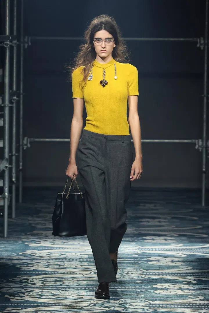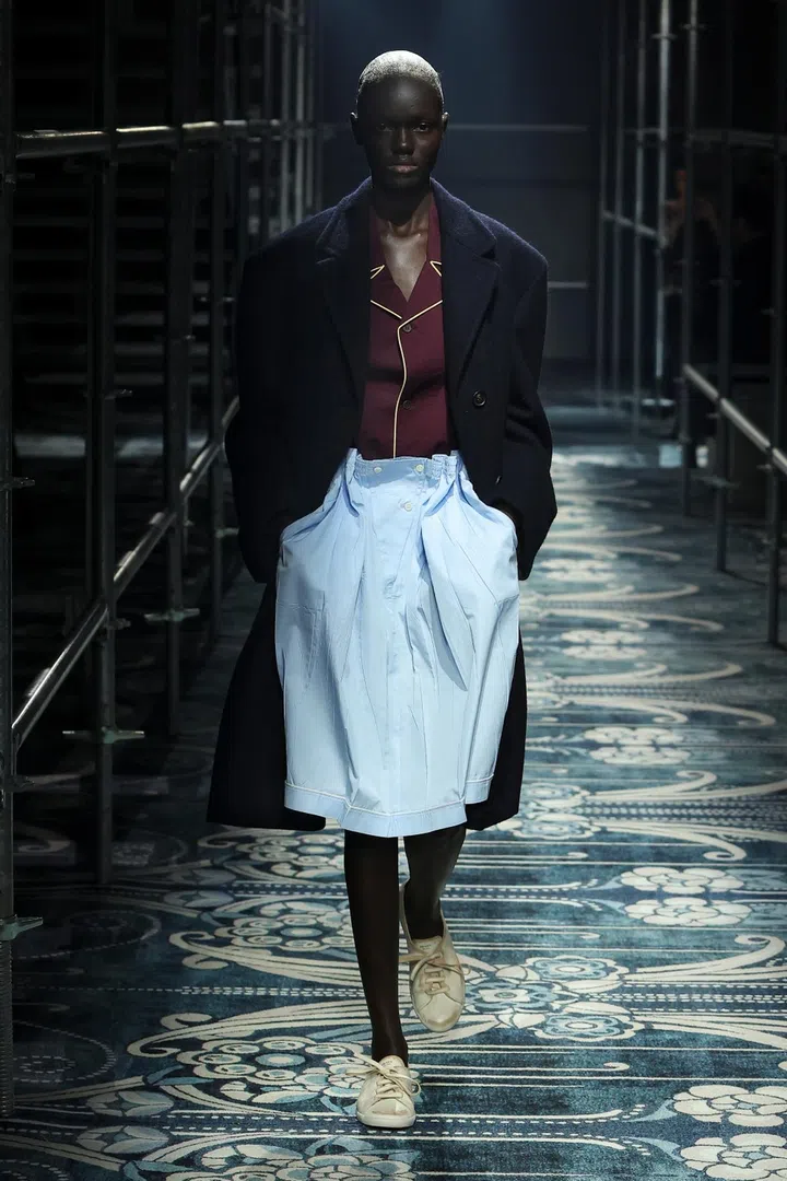 The show opened with a series of four black dresses - but make no mistake, they're not your classic LBDs (little black dresses). Instead, these looks hung loosely on the frame, with critics using words like "mousy" and "frowsy" to describe them - but in a good way. You see, the notion of "ugliness" has long been in the Prada DNA - Mrs Prada has always made it her mission to question stereotypes of beauty. In their bagginess, these dresses almost seemed to say, "so what?" to traditional silhouettes deemed more flattering for the female body. They served a woman who - genuinely - dresses for herself.